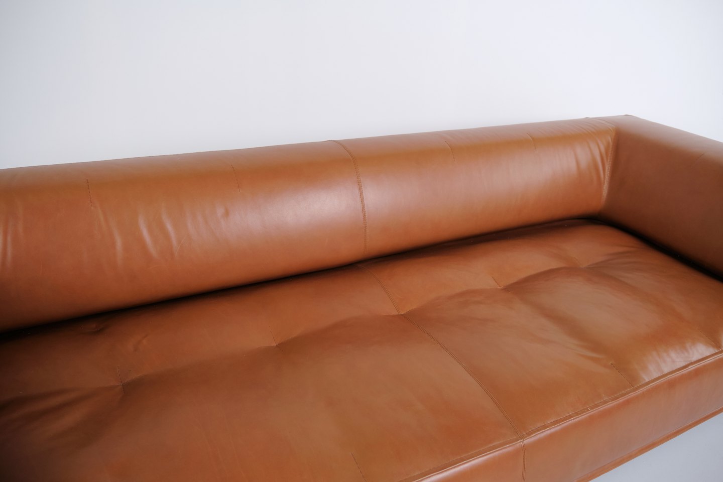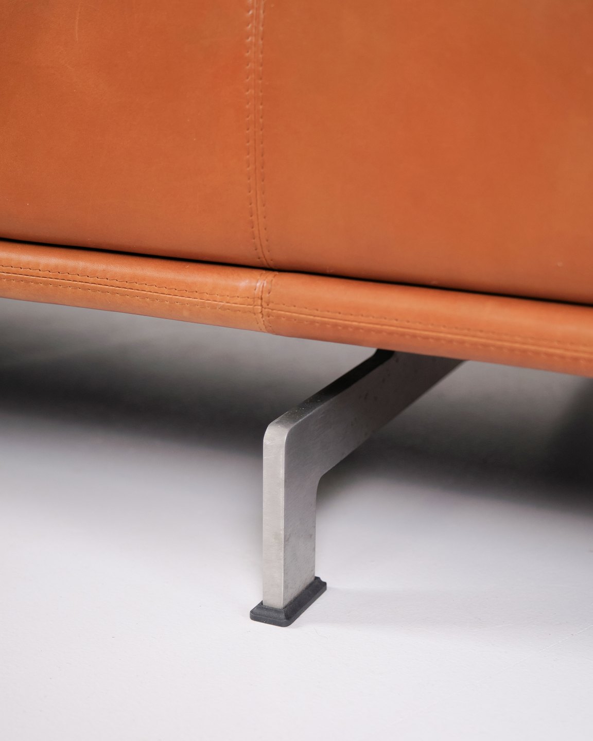 Erik Jørgensen Delphi sofa model EJ 450 designed by Hannes Wettstein in cognac leather with frame in brushed aluminium. Modern Scandinavian design.