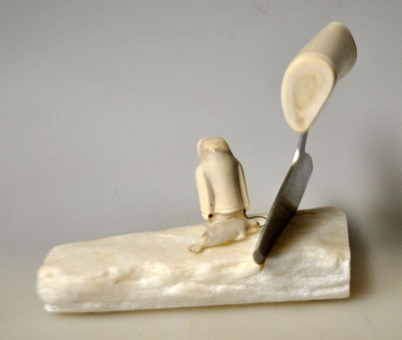 Grønlandsk figur, 2012. Figur og ulu i rensdyr knogle.