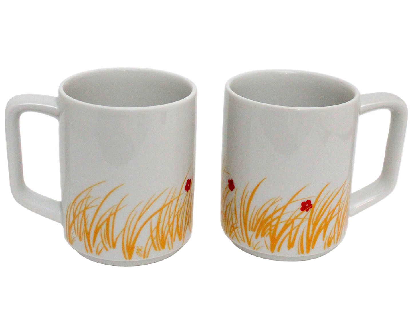 Royal Copenhagen, Picnic, Kaffekrus med gul dekoration. Designet af Grethe Meyer og Ole Kortzau. Nr. 6227. Dekoration 102. Højde 9,5 cm. Diameter 7,5 cm. Flot stand. I. sortering. Pris: 300 kr. stk. Lager: 2
