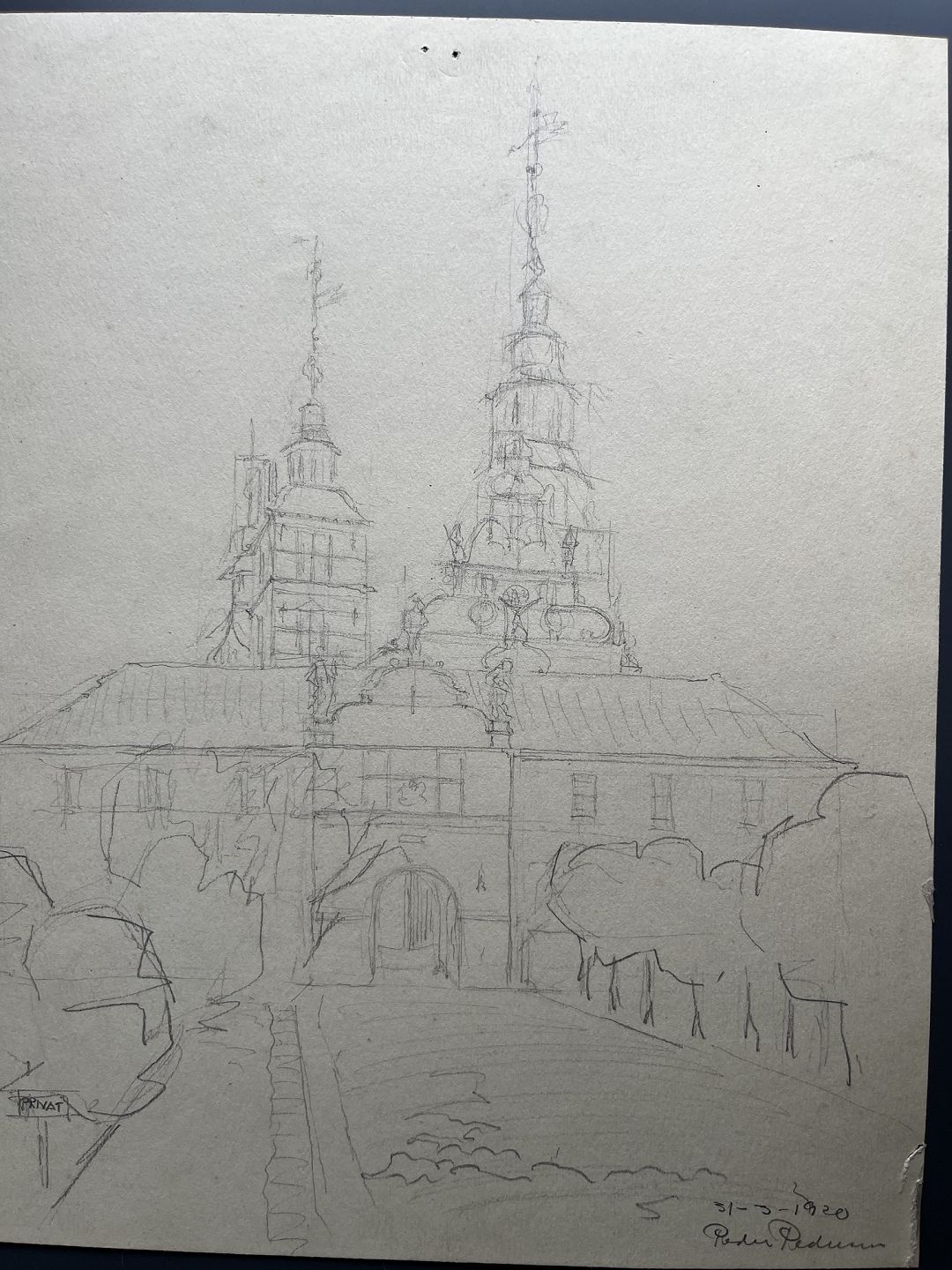 Tegning af Peder Pedersen - Rosenborg Slot, København 1920.