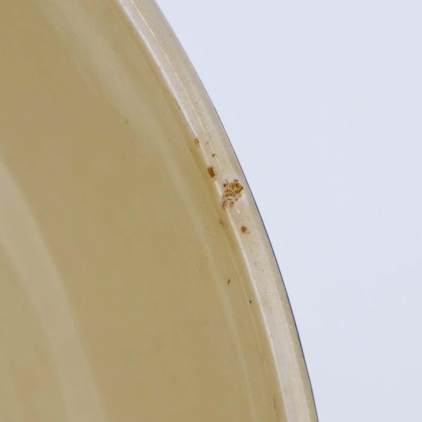 Fremstår med krakkeleringer i glasuren, lettere ridser i bunden af terrinen, brugsspor på dekorationen samt ujævnheder i glasuren.
