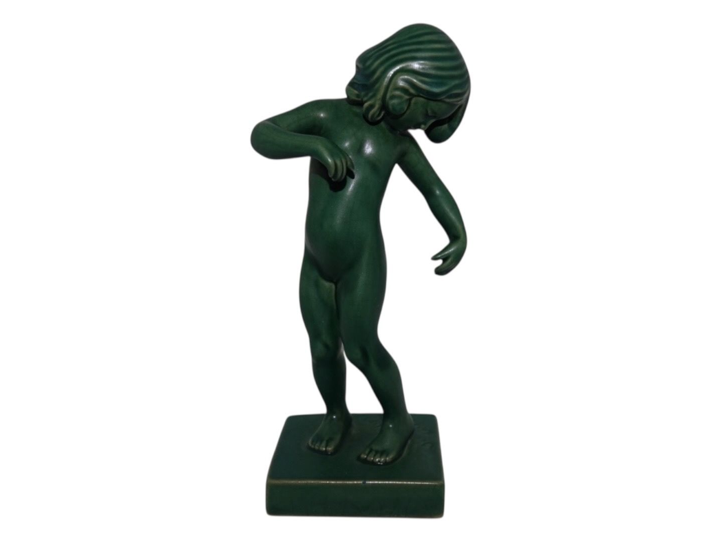 Ipsen keramik figur, pige kaldet Venus Kalipygos af Kai Nielsen i grøn udgave.