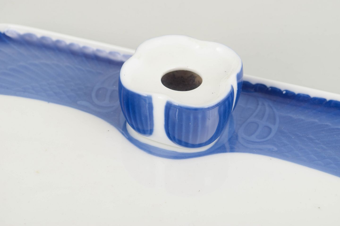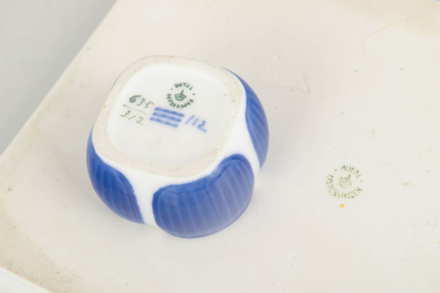 Royal Copenhagen blev grundlagt i 1775 i København under navnet Den Kongelige Porcelainsfabrik. Fabrikken er kendt for sit håndmalede porcelæn af høj kvalitet, herunder Musselmalet Riflet, og har gennem mere end to århundreder været en central aktør inden for dansk porcelænskunst. I begyndelsen af 1900-tallet arbejdede fabrikken med organiske former og dekorative strømninger inspireret af tidens Art Nouveau, hvilket ses i funktionelle, men kunstnerisk udformede objekter som dette blækhus.