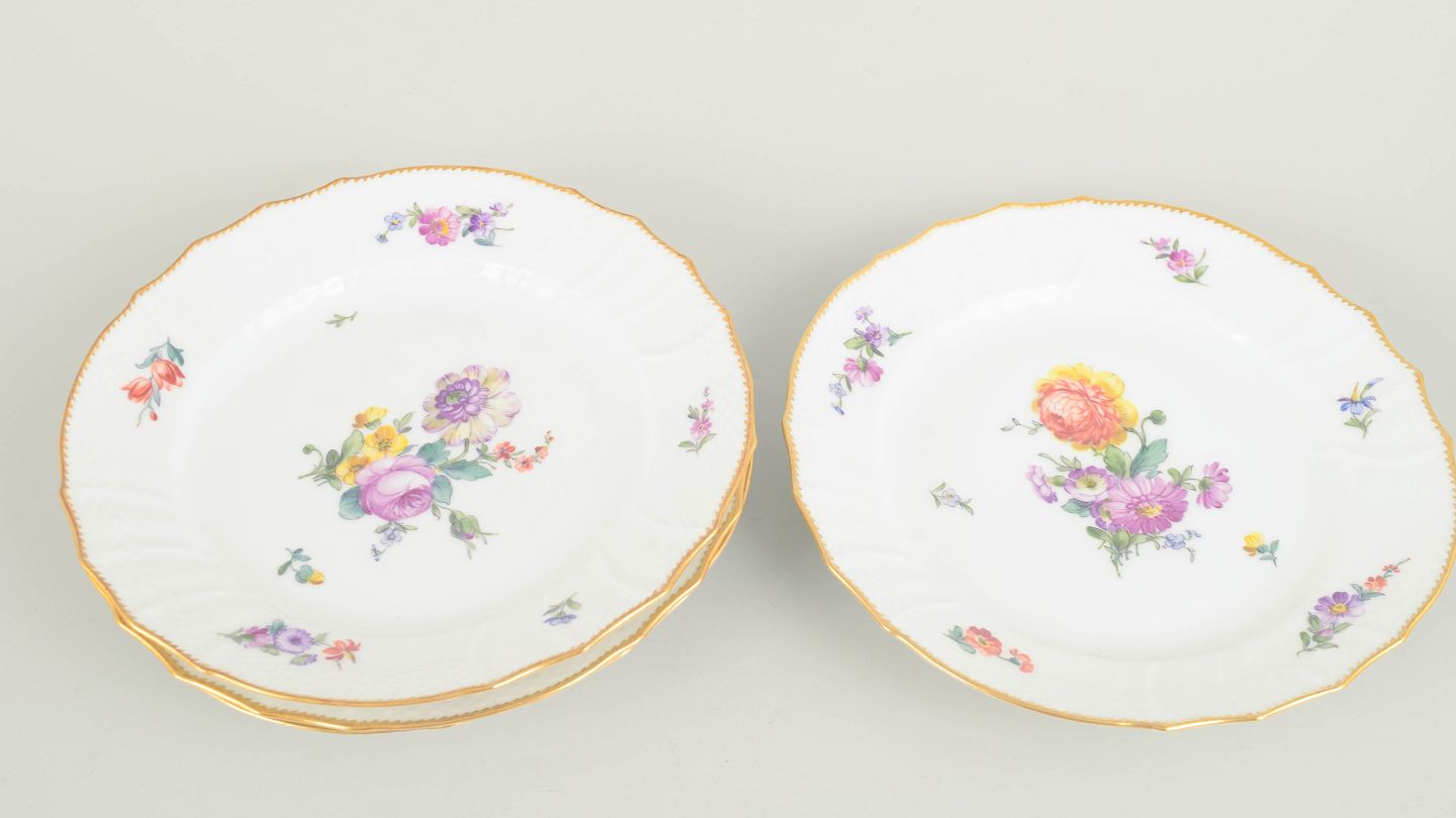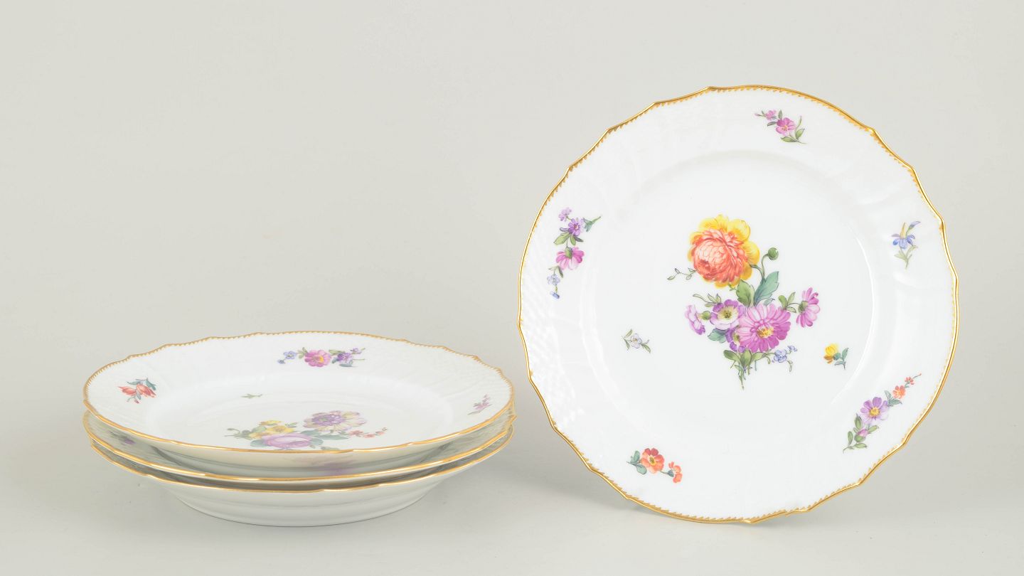 Royal Copenhagen, saksisk blomst sæt af fire frokosttallerkener.