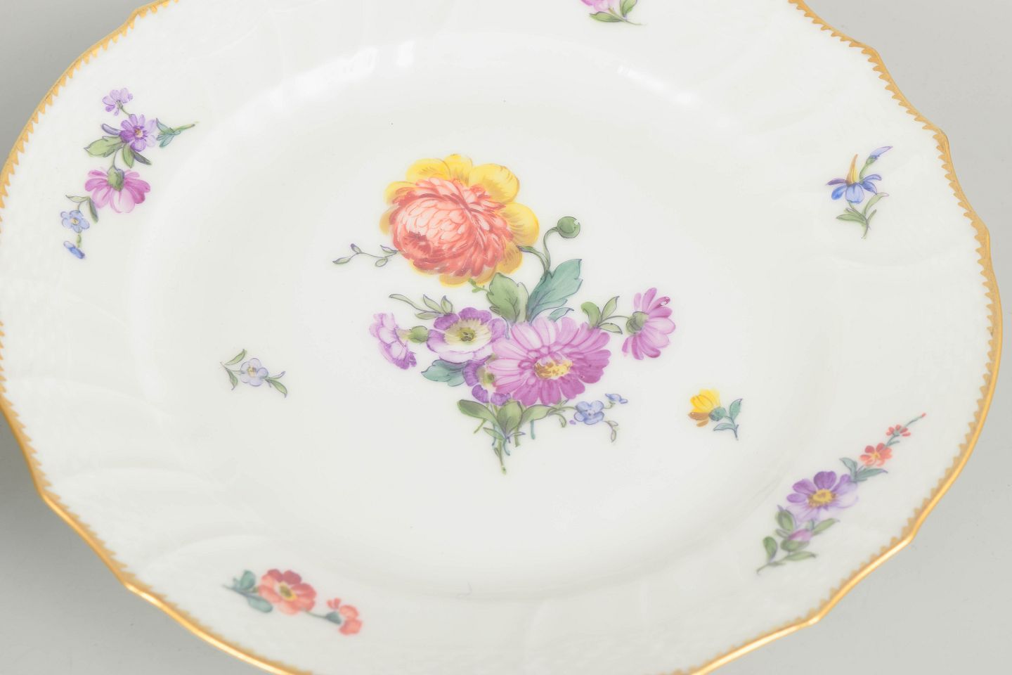 Håndmalet porcelæn dekoreret med saksisk blomst, model 4/1623. Første sortering.