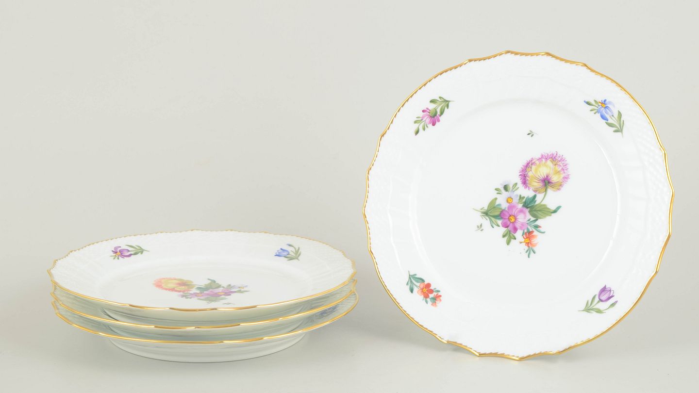 Royal Copenhagen, saksisk blomst sæt af fire frokosttallerkener.