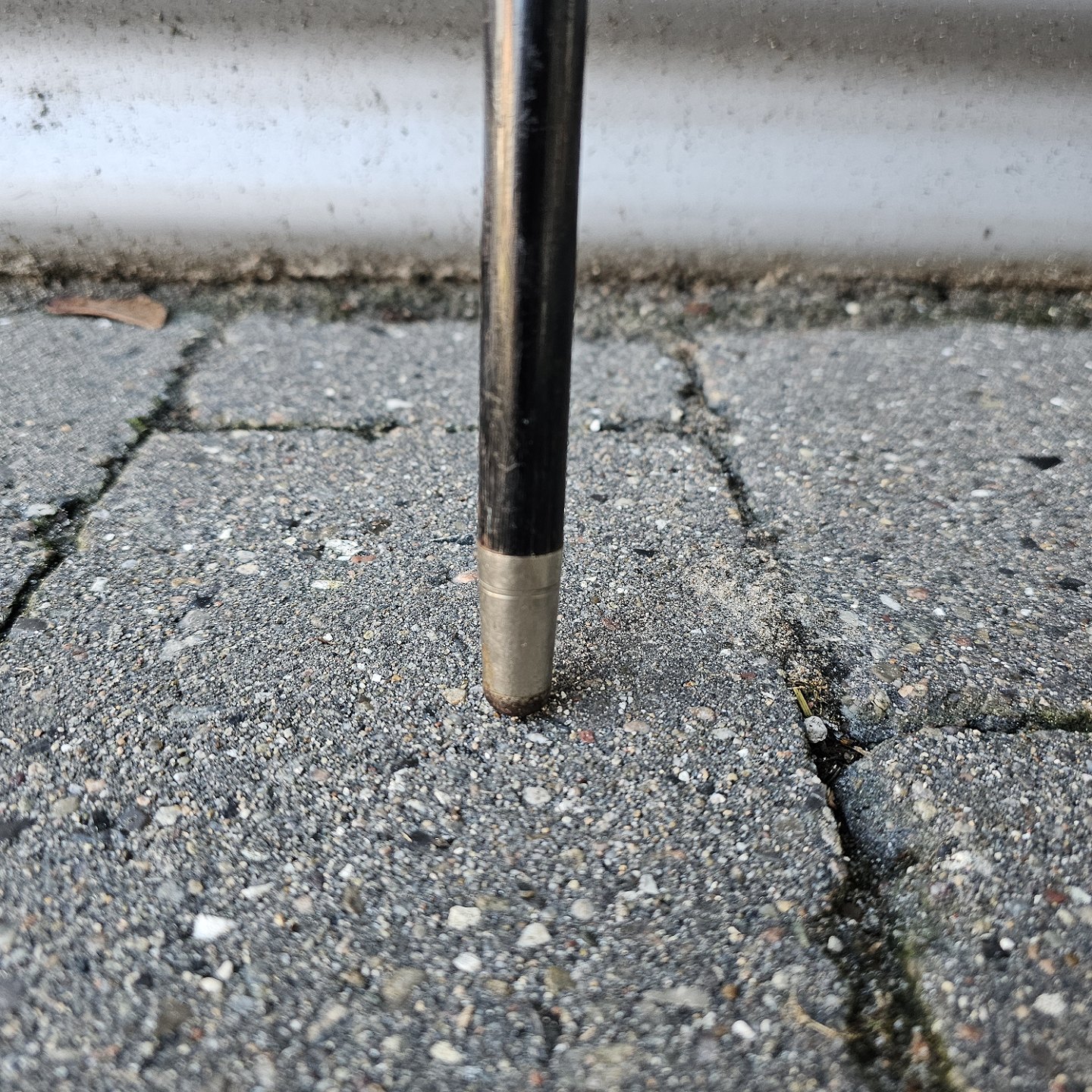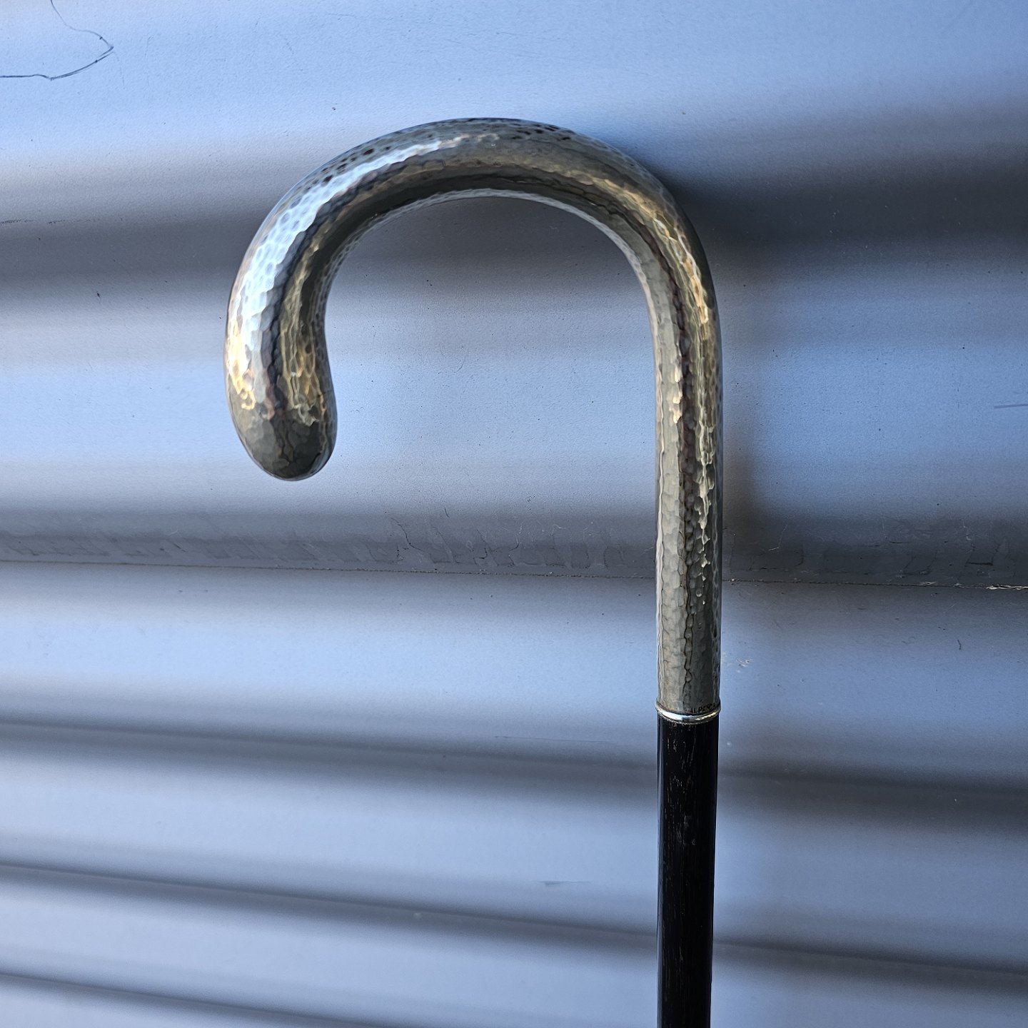 Stok i lakeret træ med buet håndtag