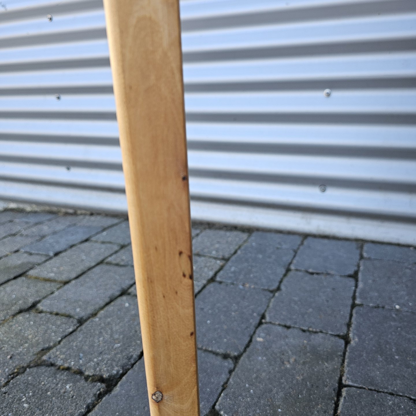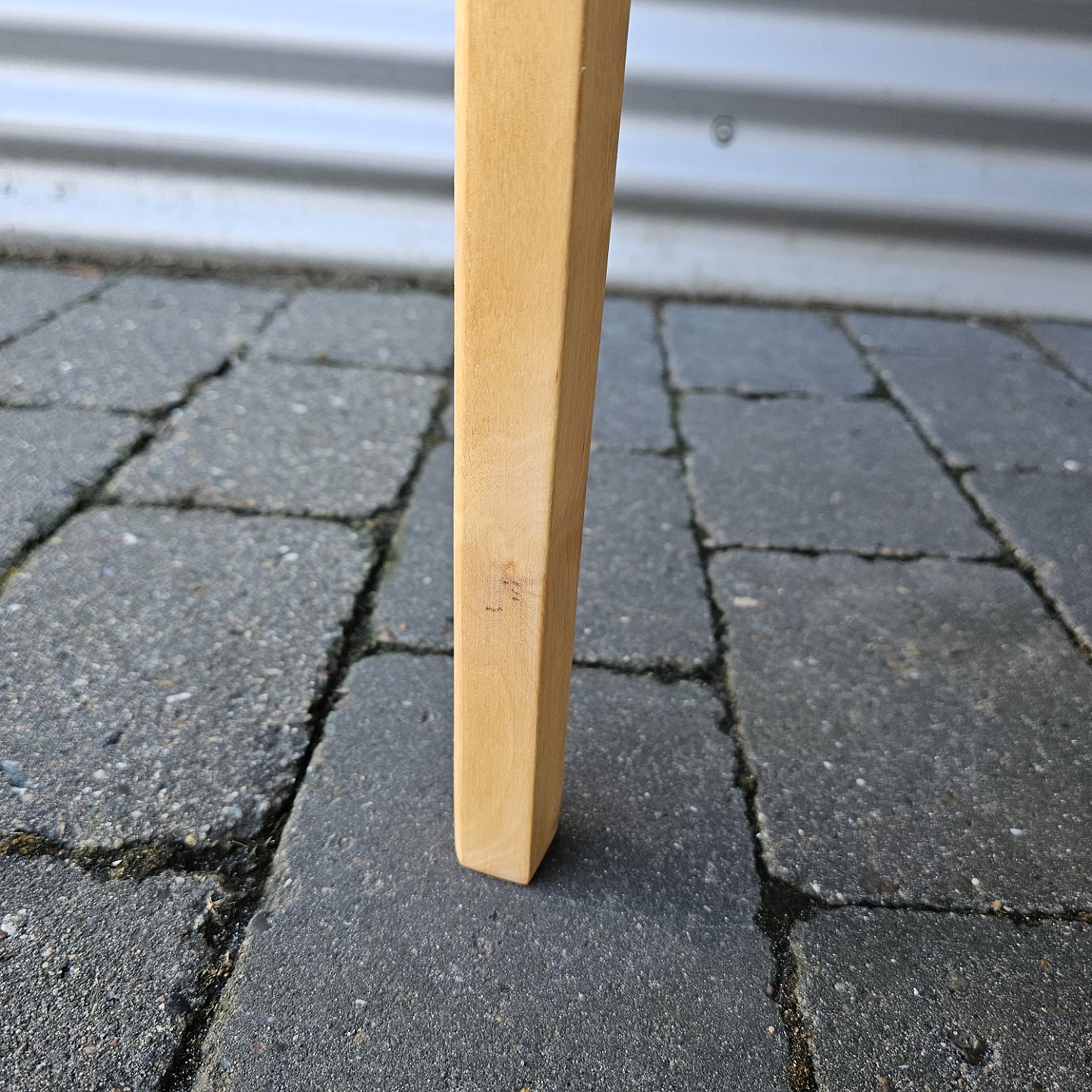 Fremstår med brugsspor på stellet og rester af maling på undersiden af bordpladen