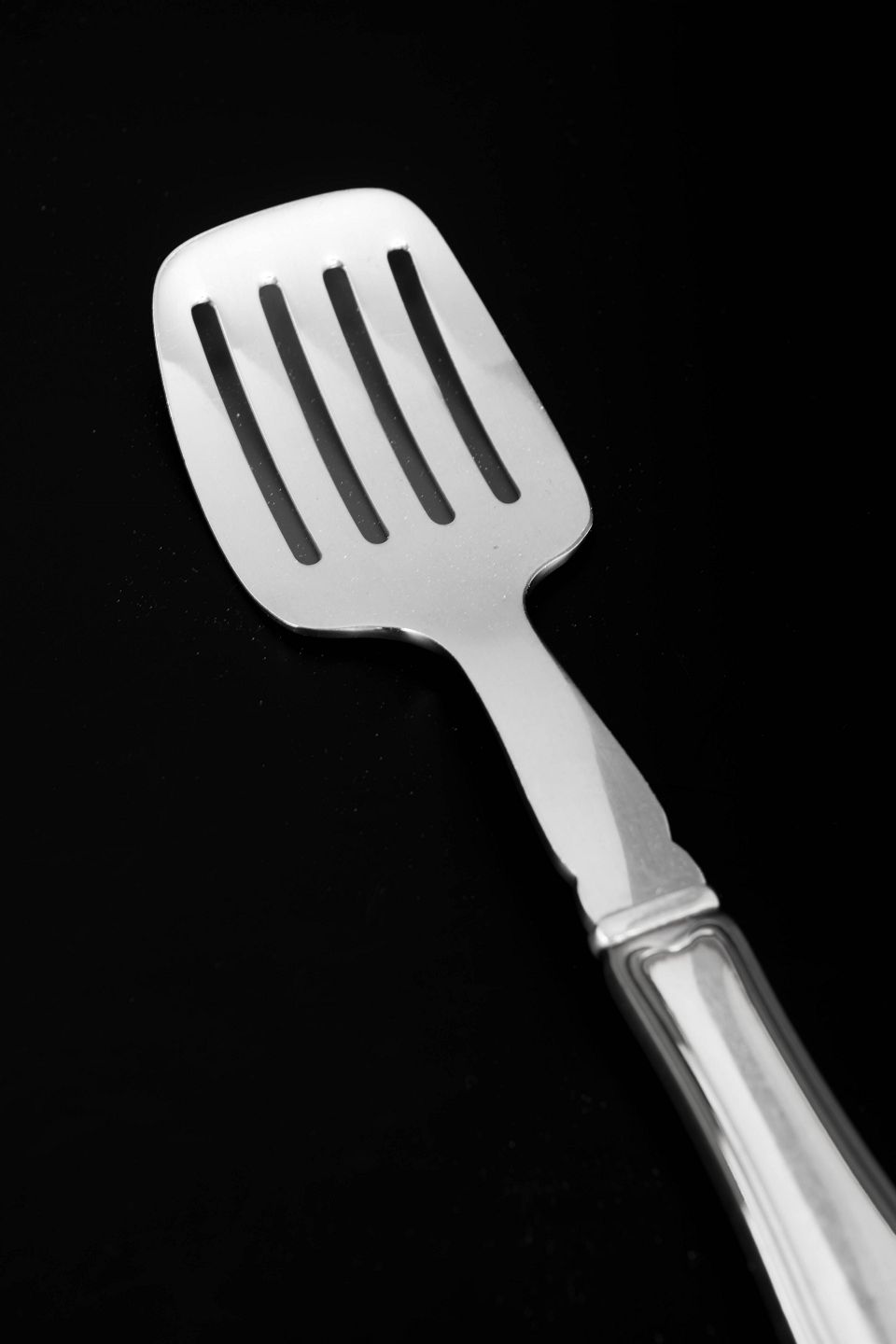 Sardingaffel i rustfrit stål og sterlingsølv med skaft i mønstret Dobbeltriflet. Udført med bredt perforeret blad i rustfrit stål og et elegant sølvskaft med de karakteristiske dobbelte rifler langs kanten. Et klassisk og funktionelt serveringsredskab fra Georg Jensen.
