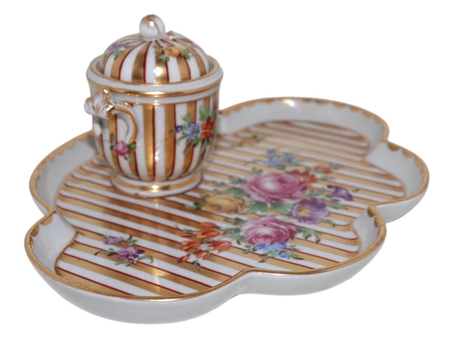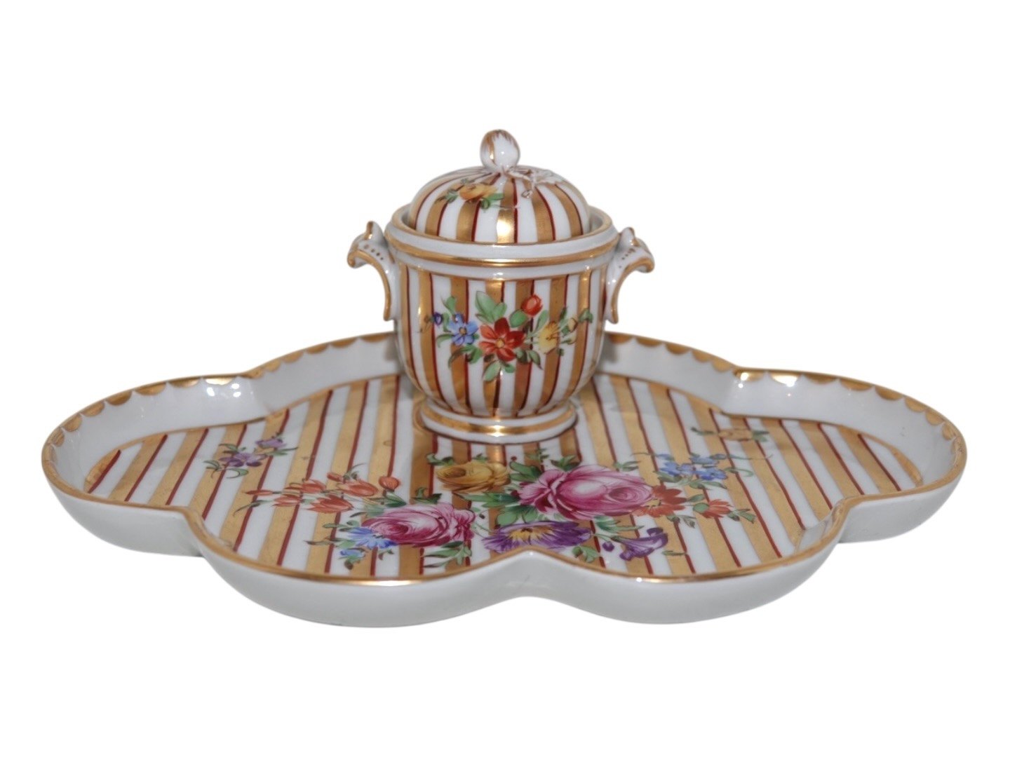 Formentlig tysk porcelæn, blækhus med Saksisk Blomst dekoration.