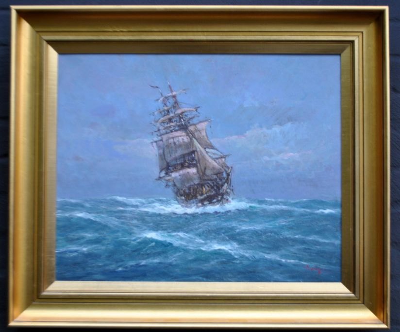 Ploug, Ejnar Andreas (1914 - 1983) Danmark: Marine. Olie på lærred. Signeret: Ploug. H: 41 cm. B: 51 cm.