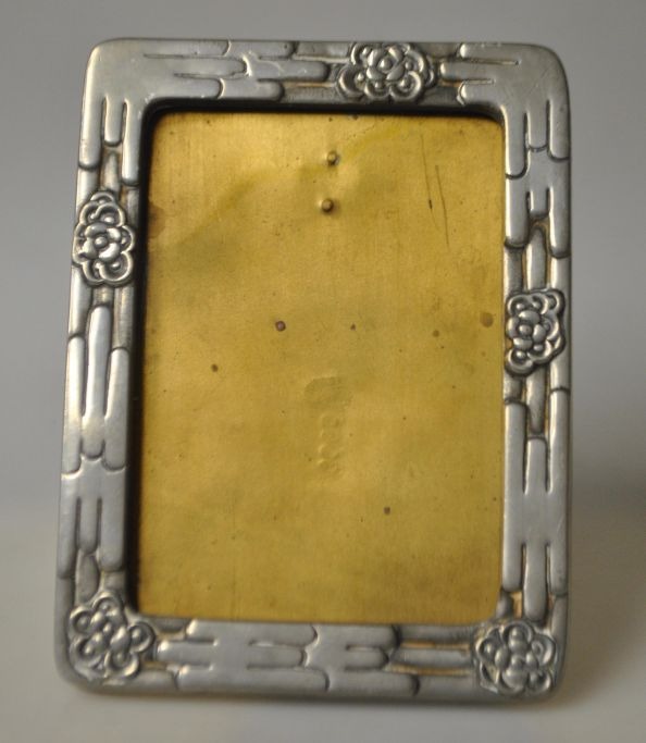 Hertz Ballin tin fotoramme, 20. årh. København, Danmark. Skønvirke. Dekoreret med blomster. Stemplet: HB T 123. H: 17,5 cm. B: 13 cm.