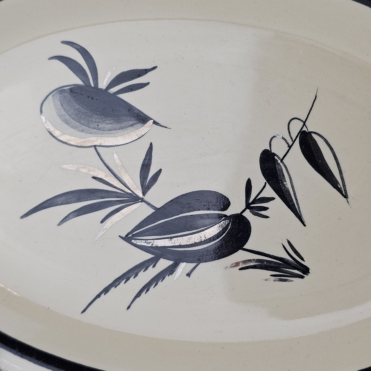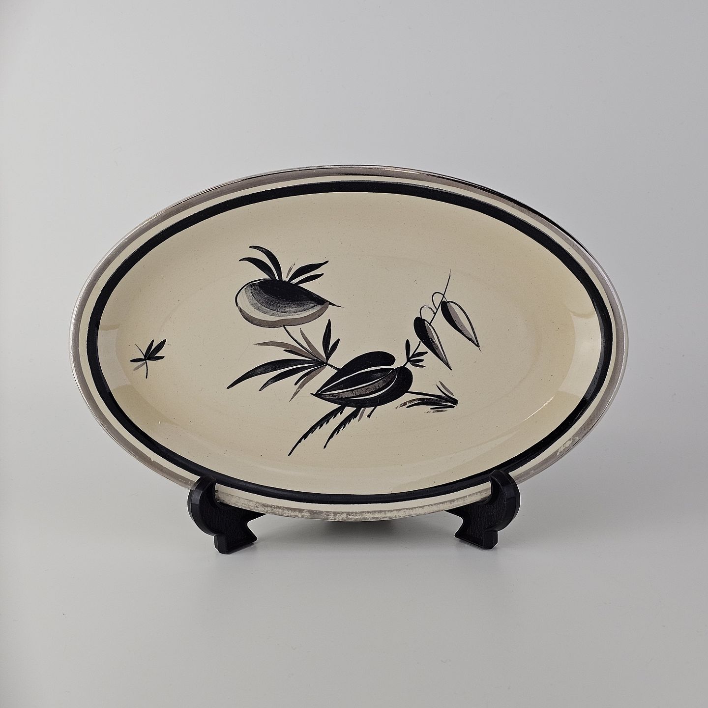 Ovalt fad i fajance fra stellet Dragsholm fremstillet i perioden 1934-1965.