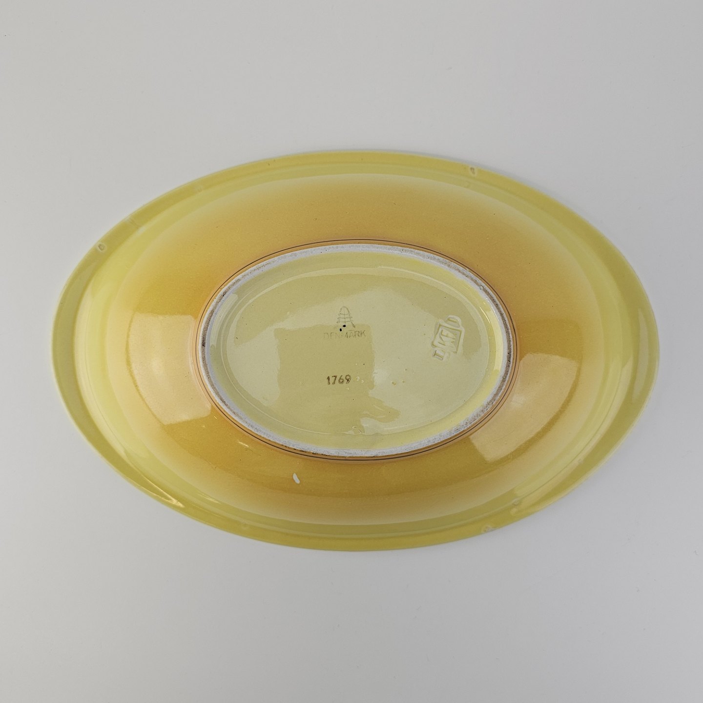 Oval skål i fajance fra stellet Gertrud fremstillet i perioden 1933-1939.