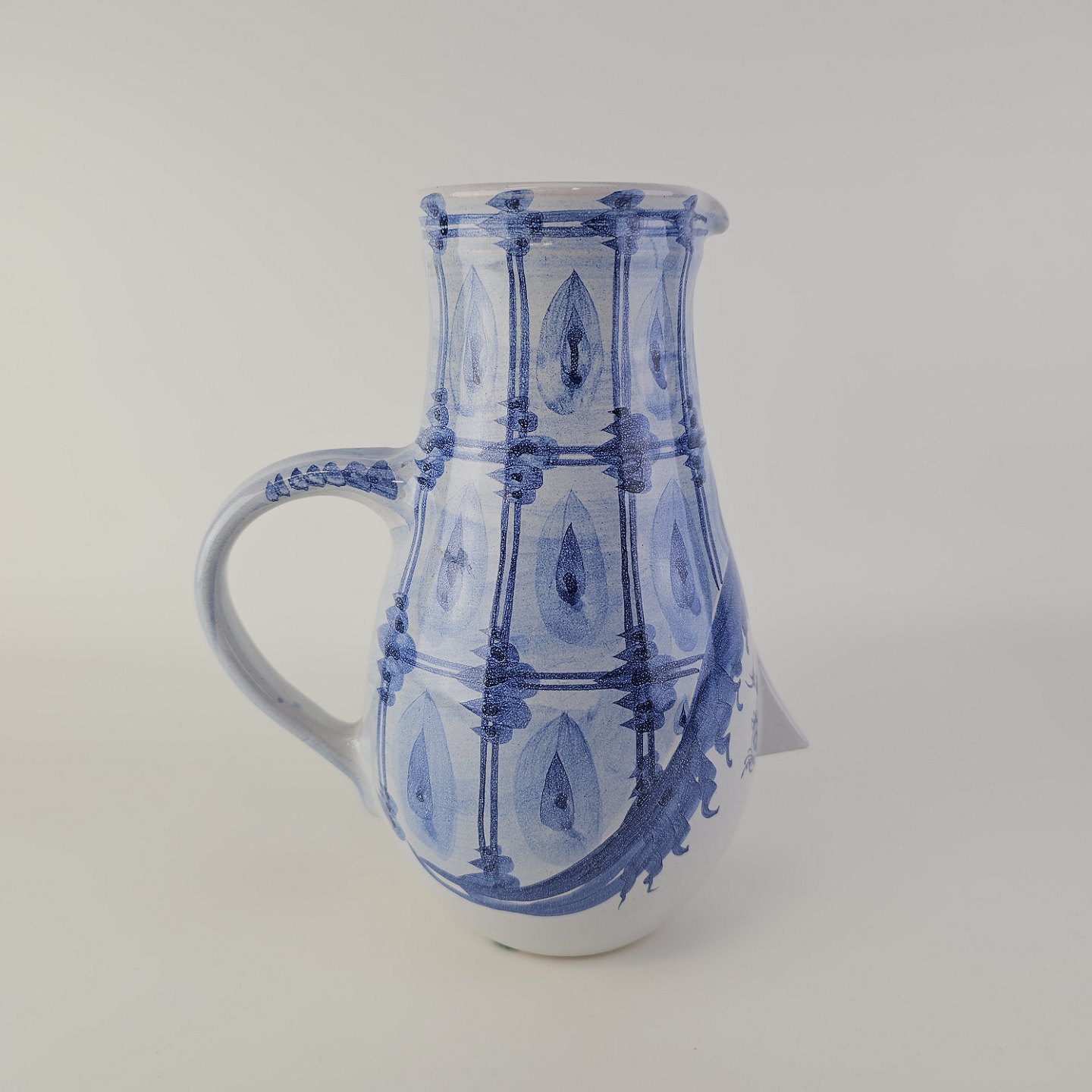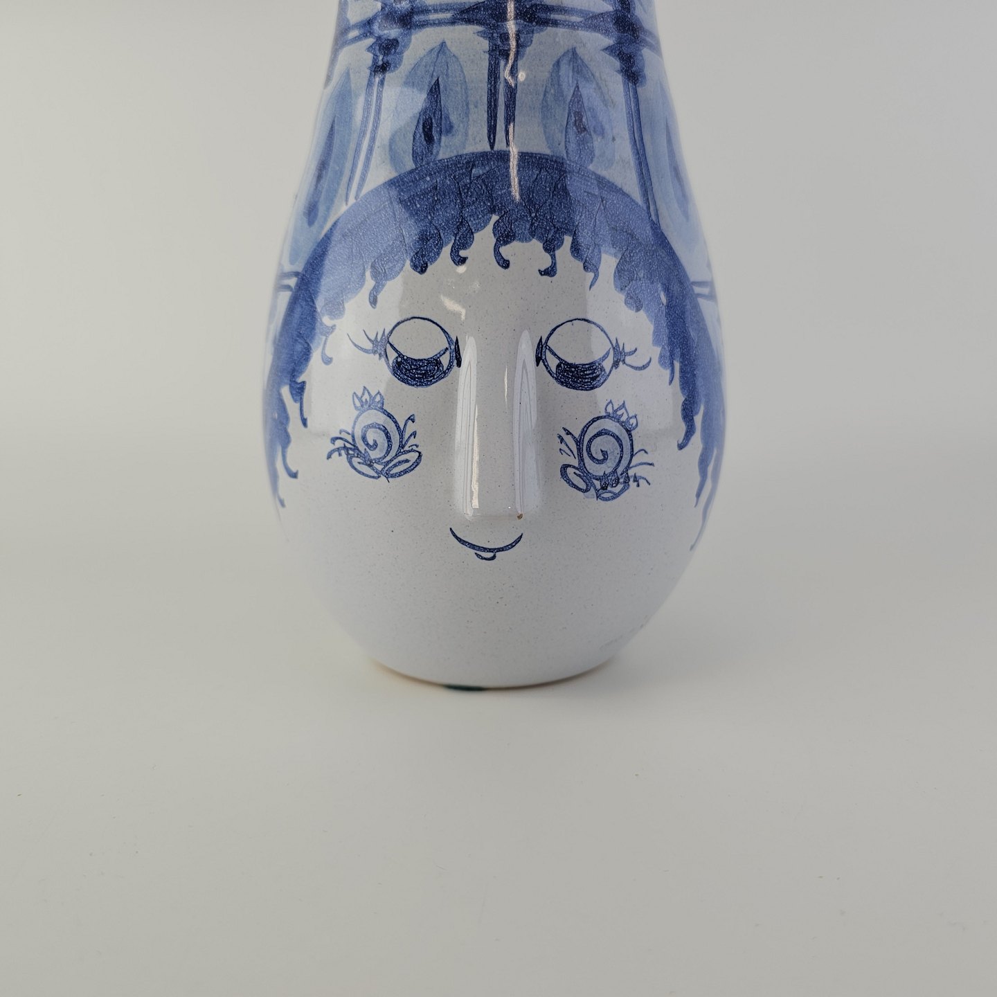 Håndmalet kande af porcelæn med motiv af et kvindehoved