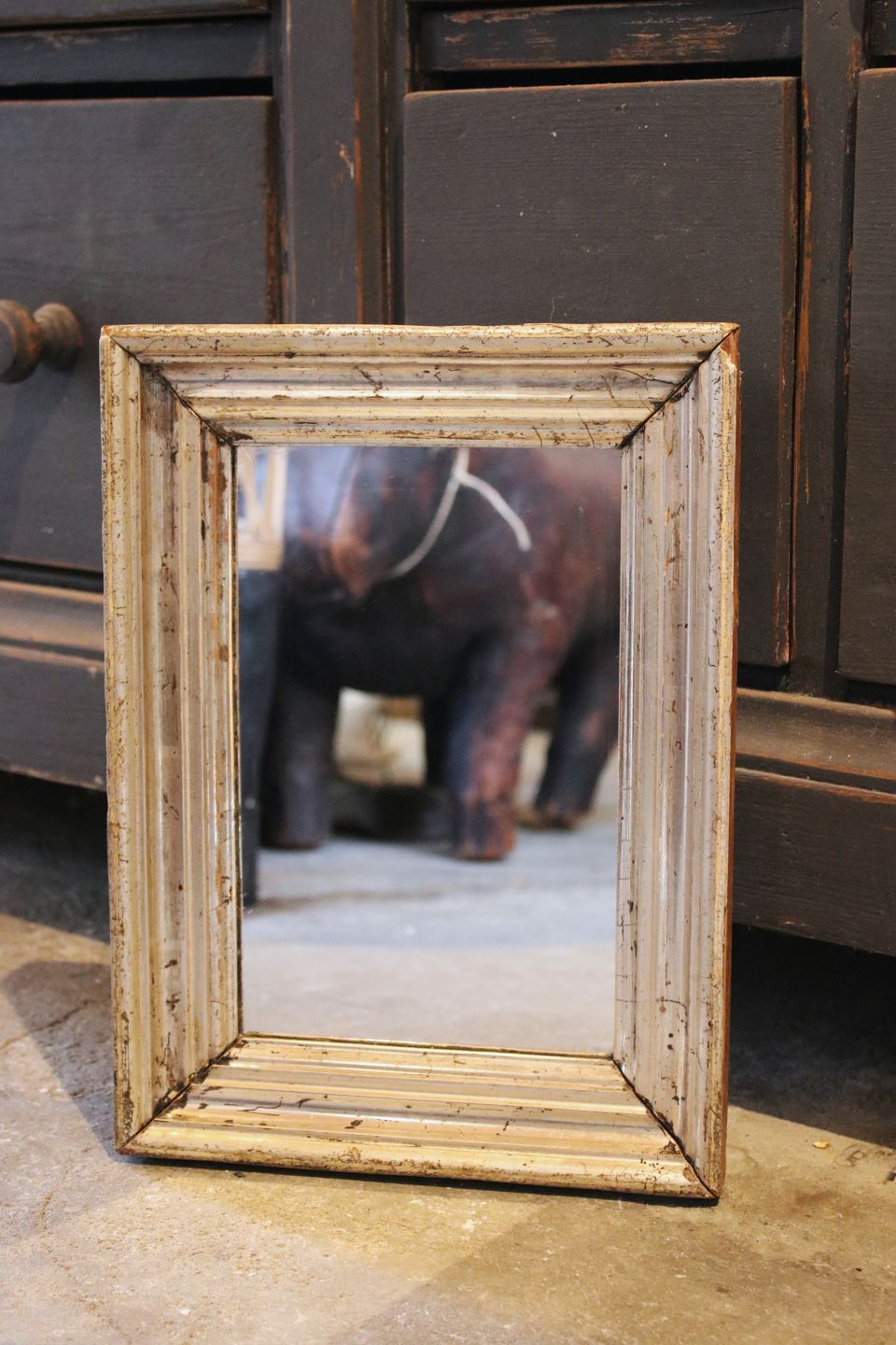 Antik , 1800 tals bred sølvramme med gammelt spejlglas.