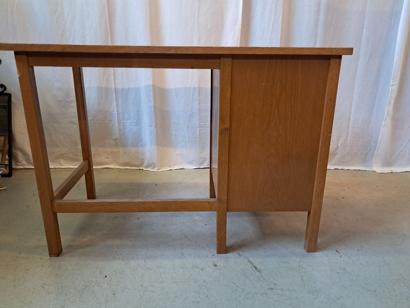 Børne skrivebord i fineret egetræ, fra 1950erne.