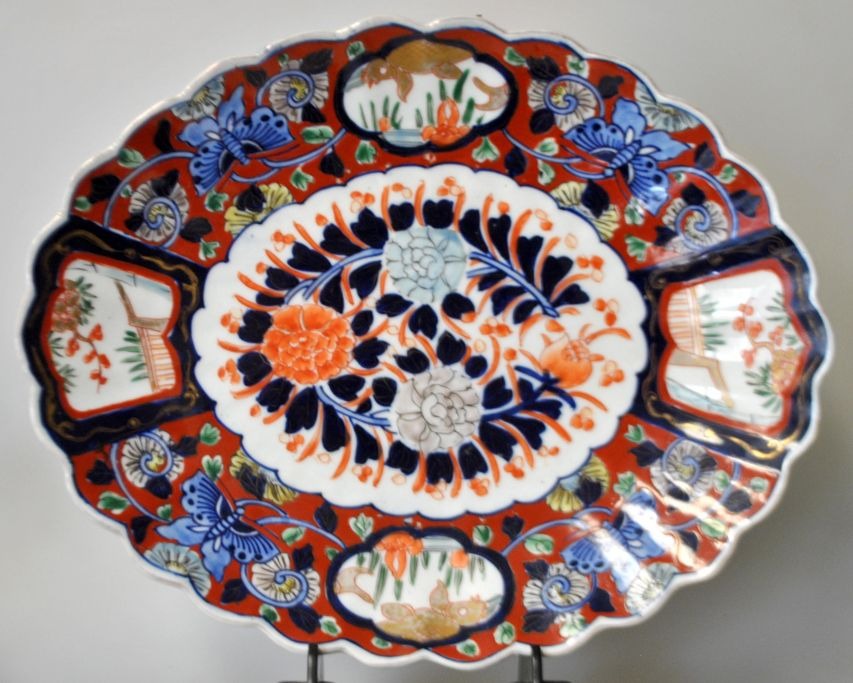 Ovalt Imari fad i porcelæn, 19. årh. Japan.