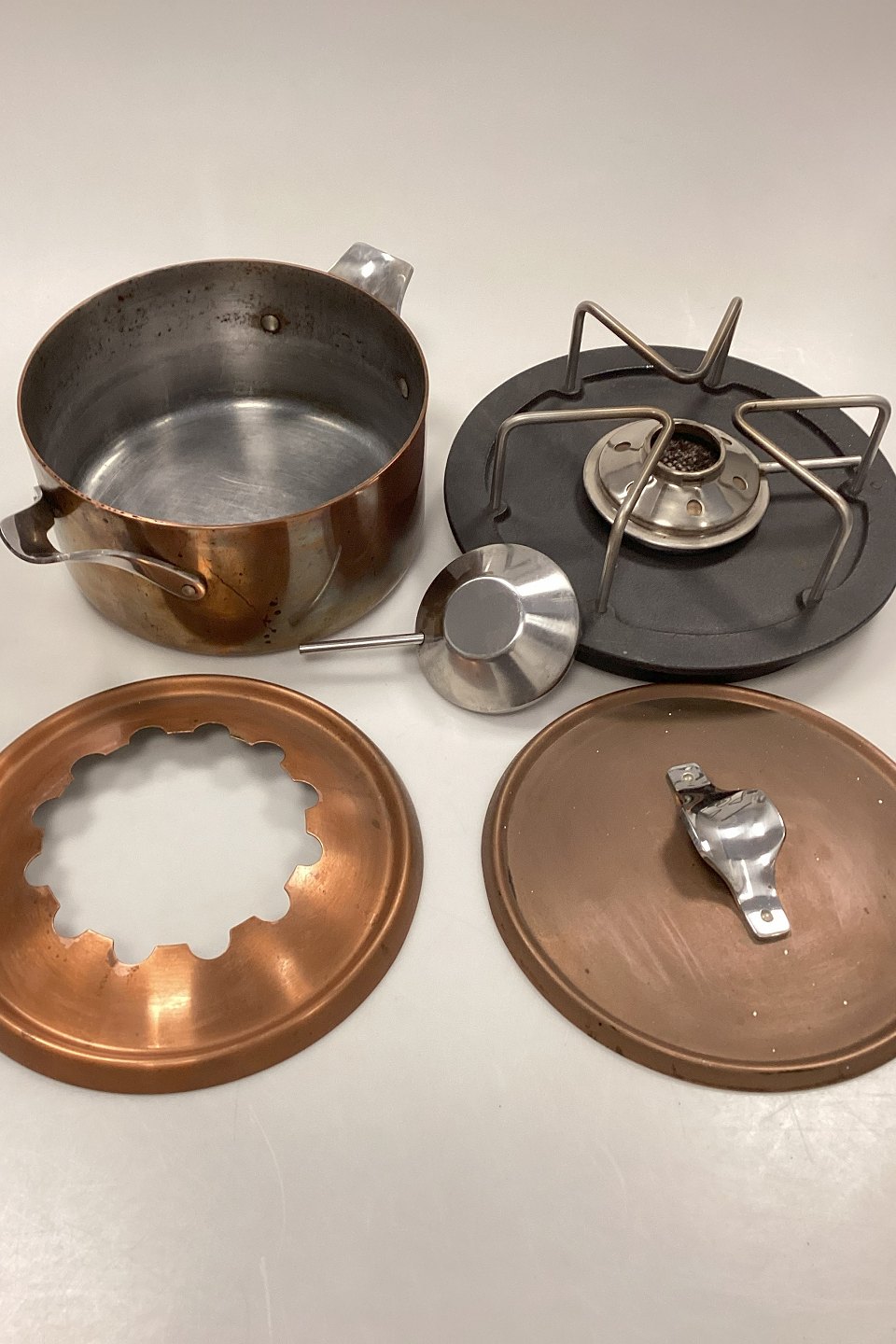 Georg Jensen fondue grydesæt i Kobber, bundfad i støbejern