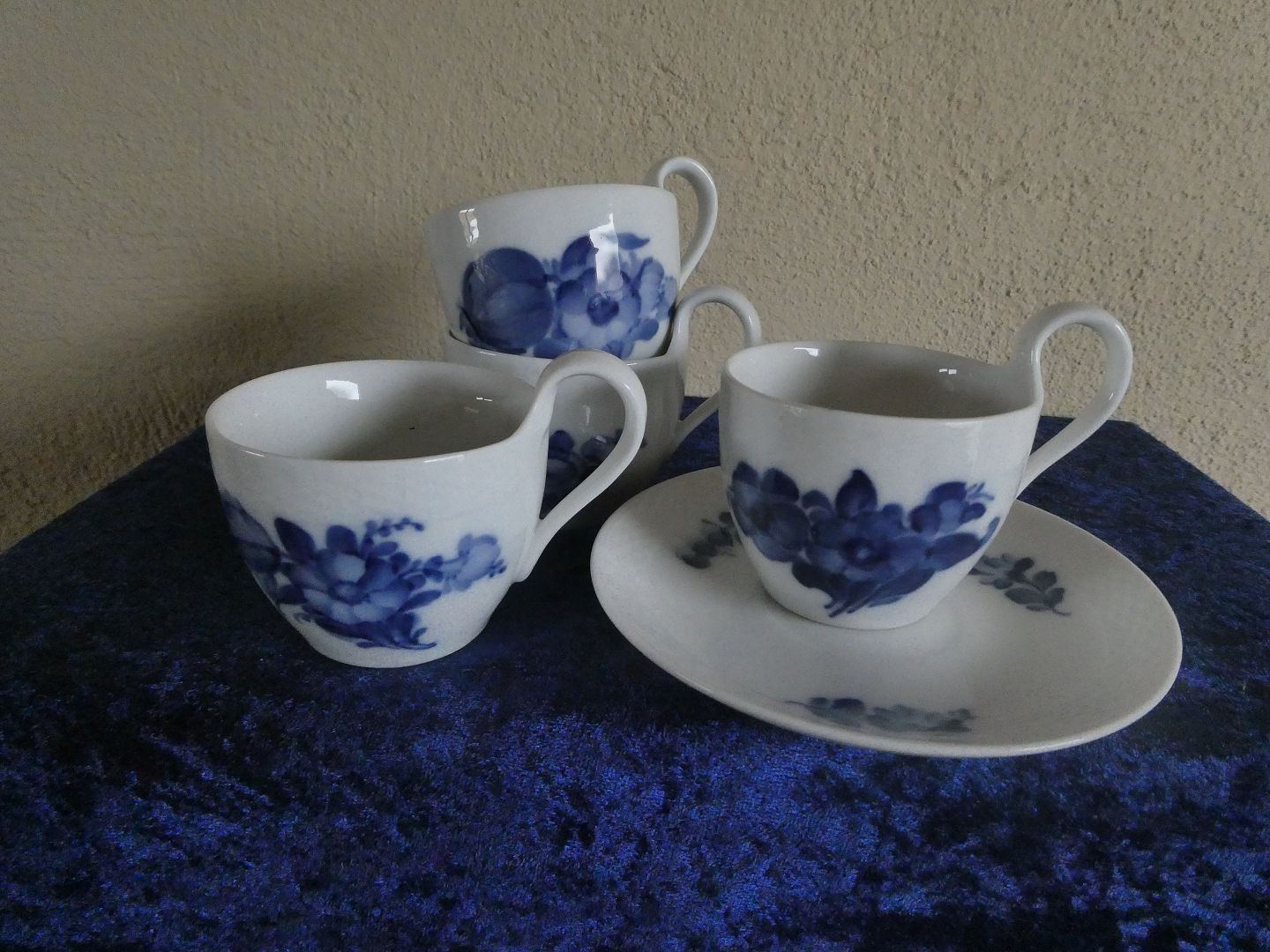 Blå Blomst Flettet porcelæn. Sæt på 4 højhankskopper nr. 8193 + 1 underkop