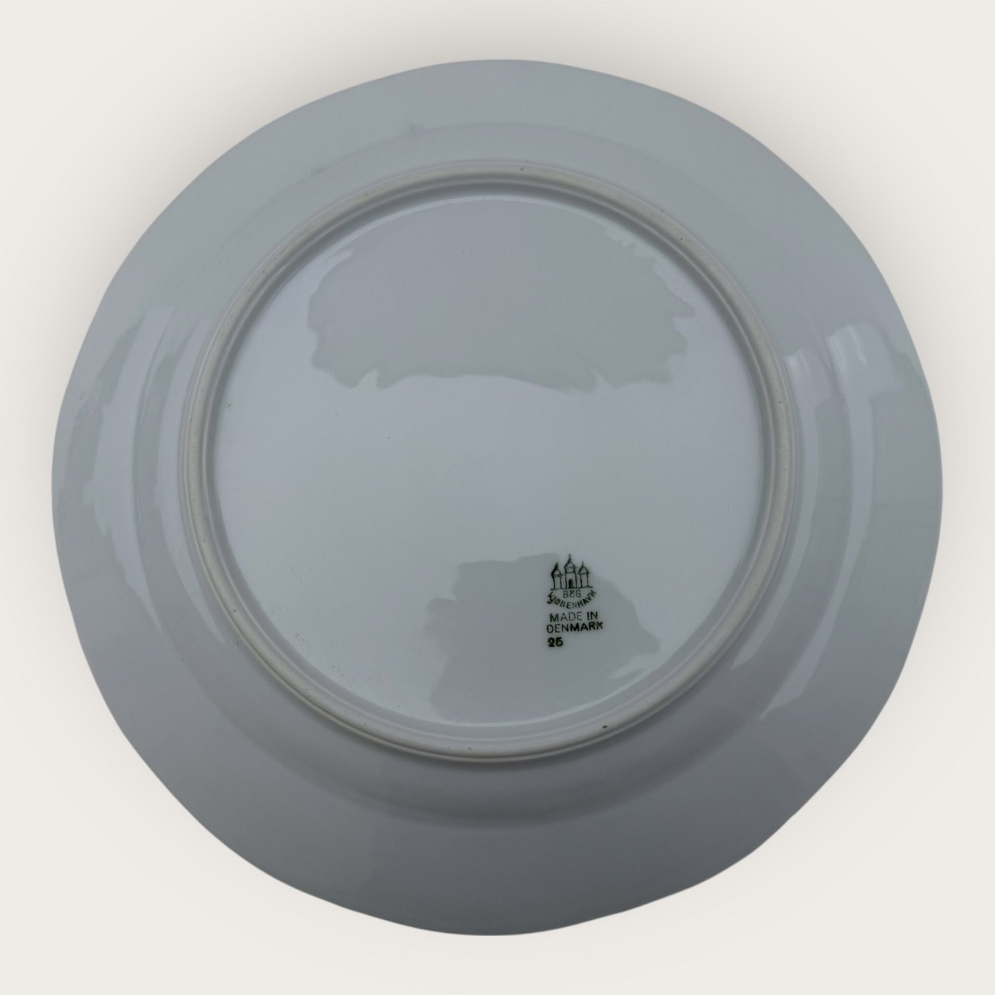 | Bing & Grøndahl, Hvid Offenbach, Middags tallerken #25, 24,5cm i diameter, 2.sortering *Pæn stand*