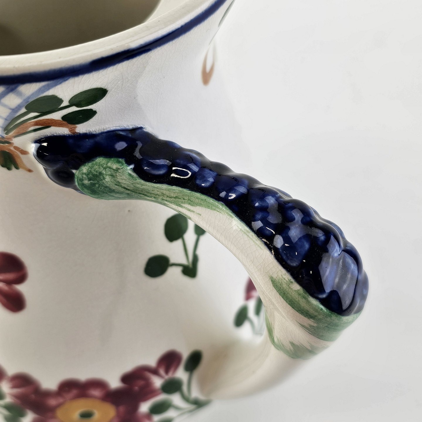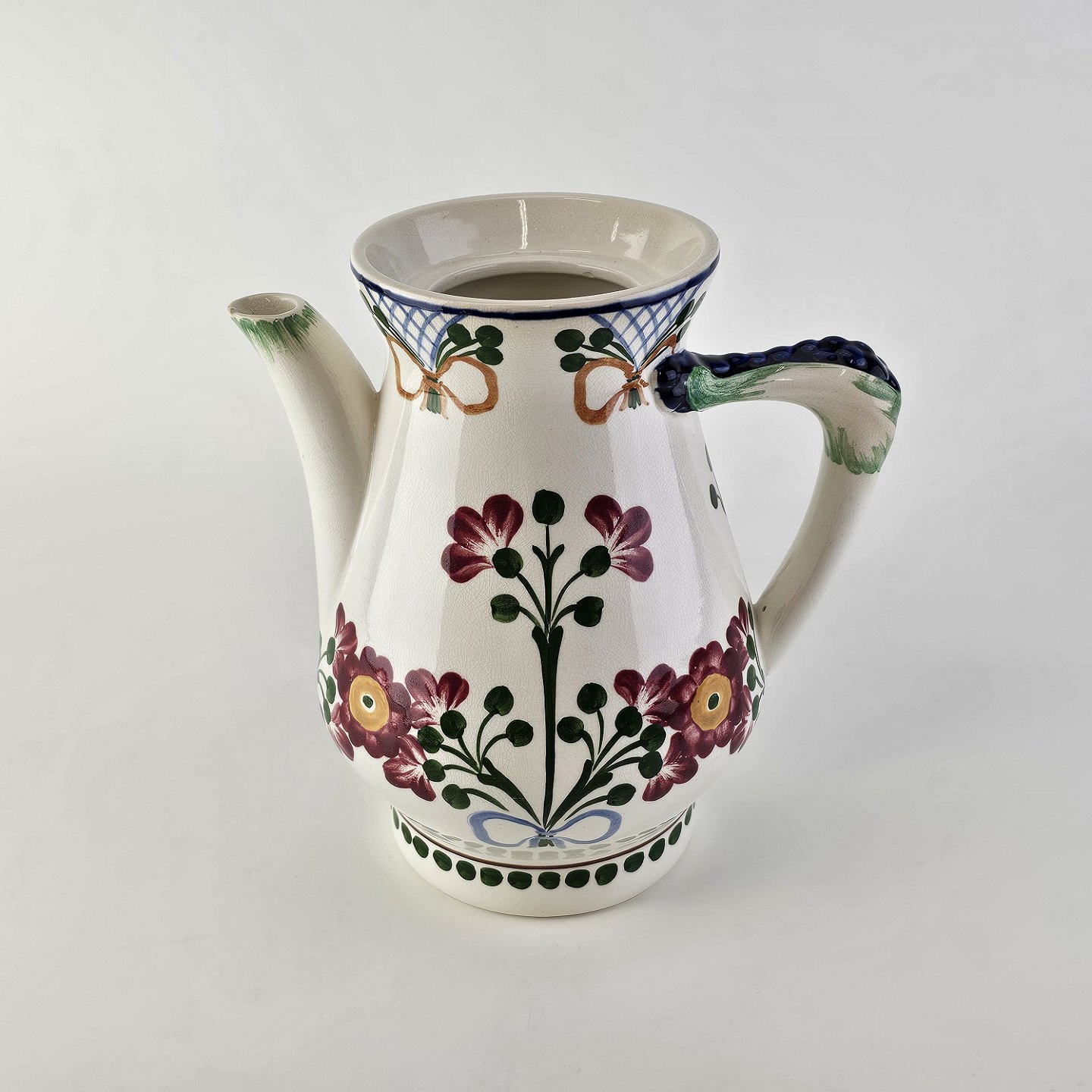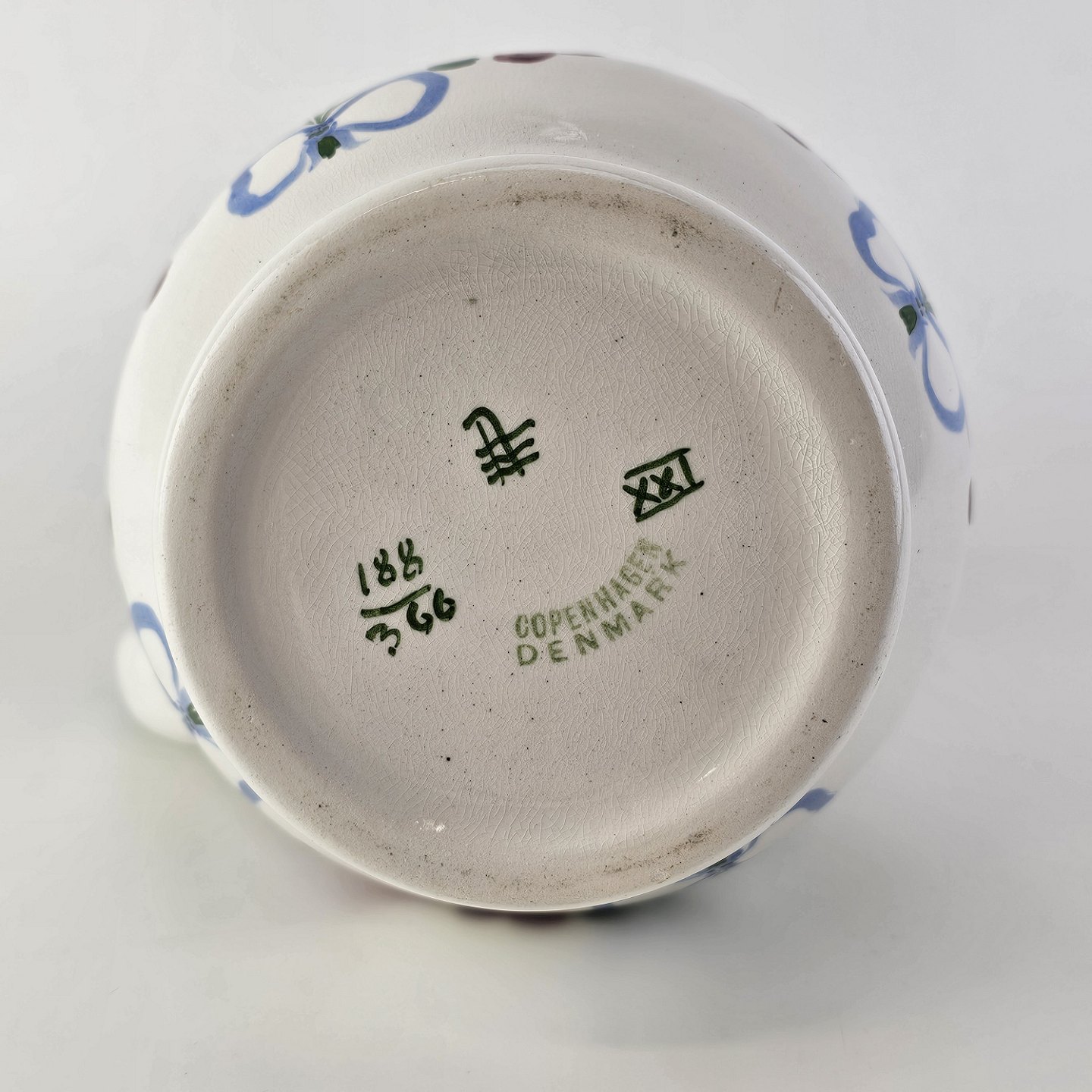 Stellet er i hvid fajance og håndmalet med dekoration af røde blomster