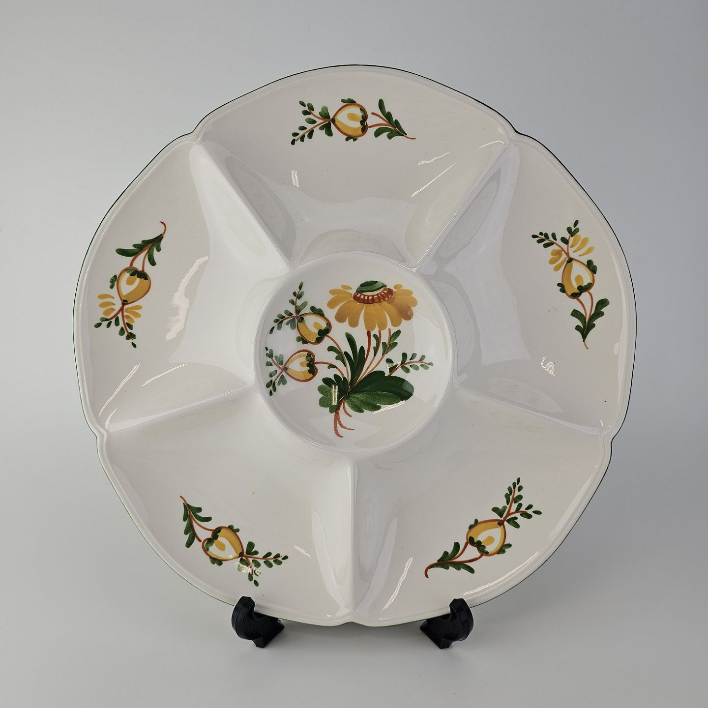 Rundt fad i fajance fra stellet Maj fremstillet i perioden 1941-1966.