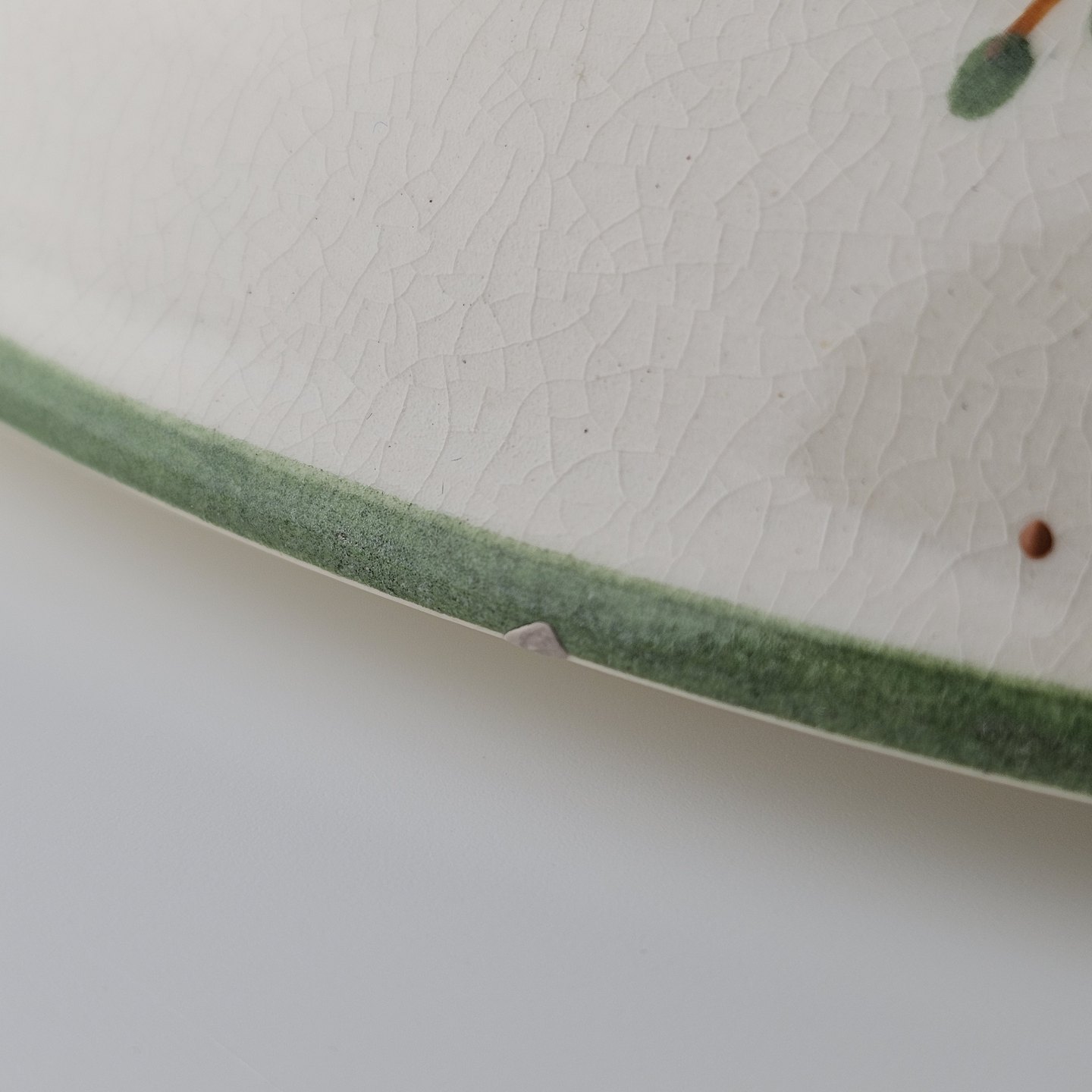 Fremstår med et afslag på kanten af låget