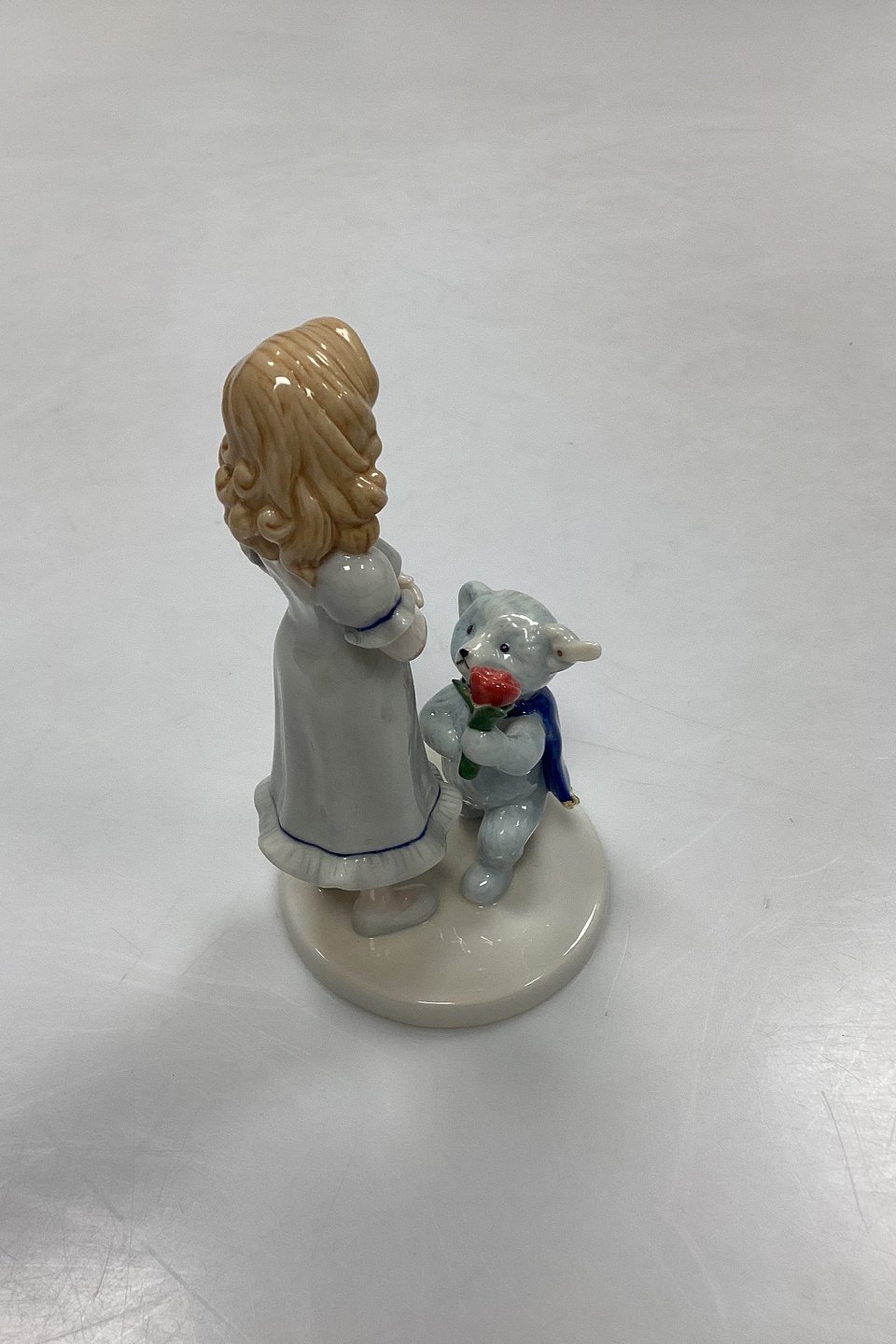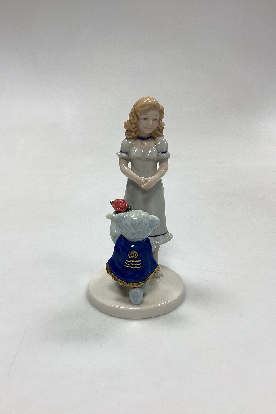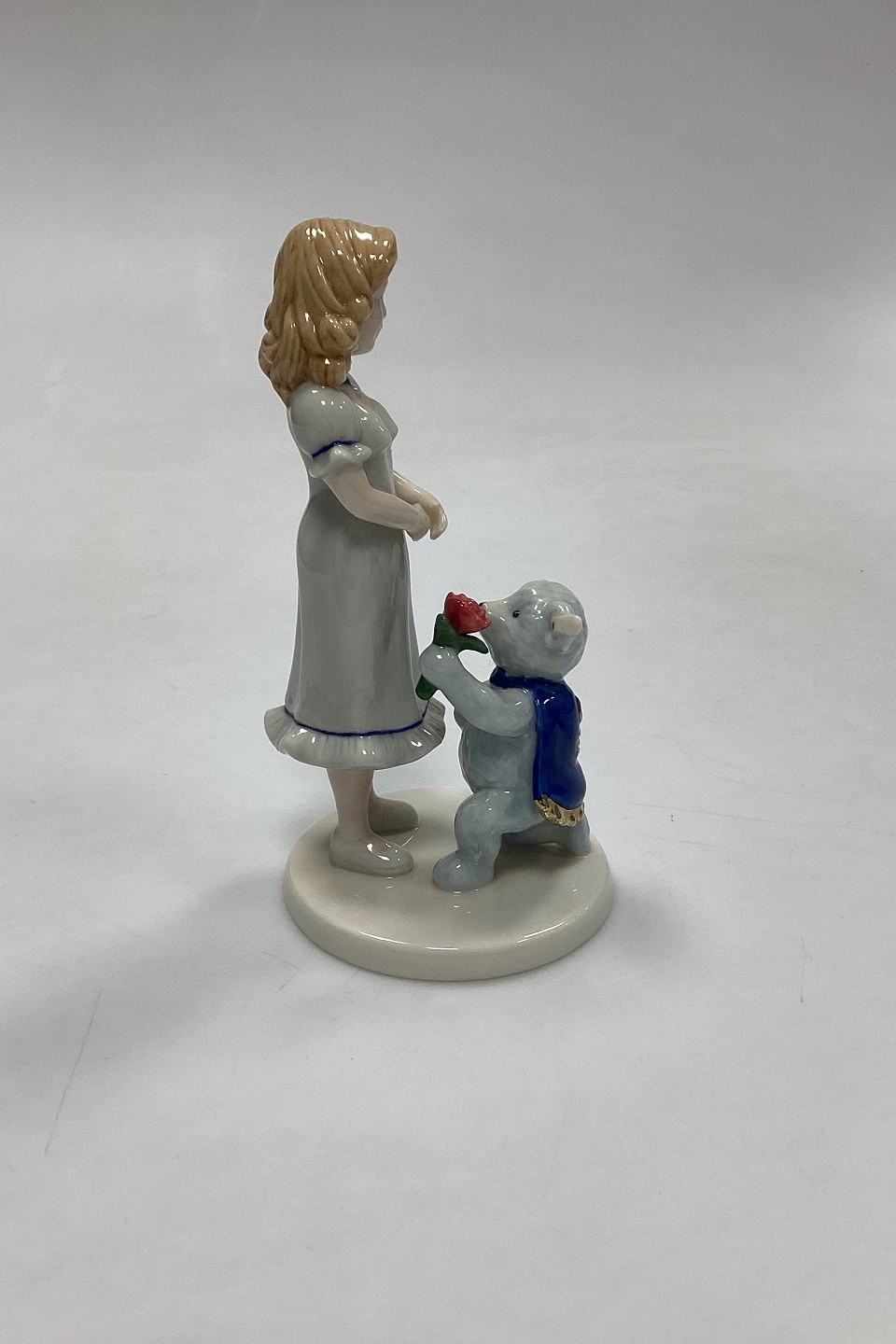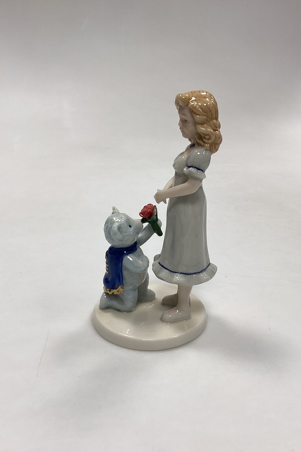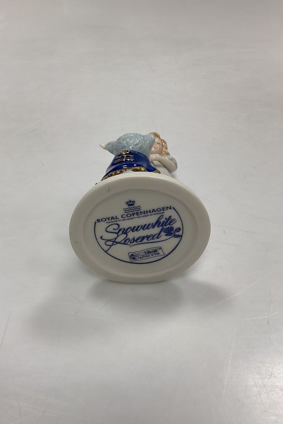 Royal Copenhagen Figur - Snowwhite Rosered. Motiv fra eventyret Snehvid og Rosenrød med Steiff Bamse på frierfødder. Samarbejde mellem de to firmaer med inskriptionen: Snowwhite Rosered Steiff / Button in ear.