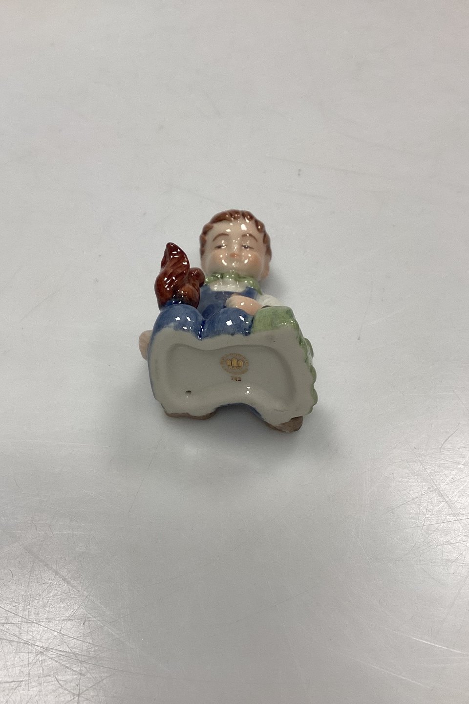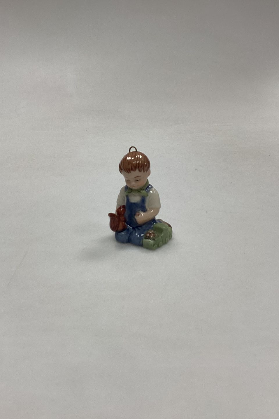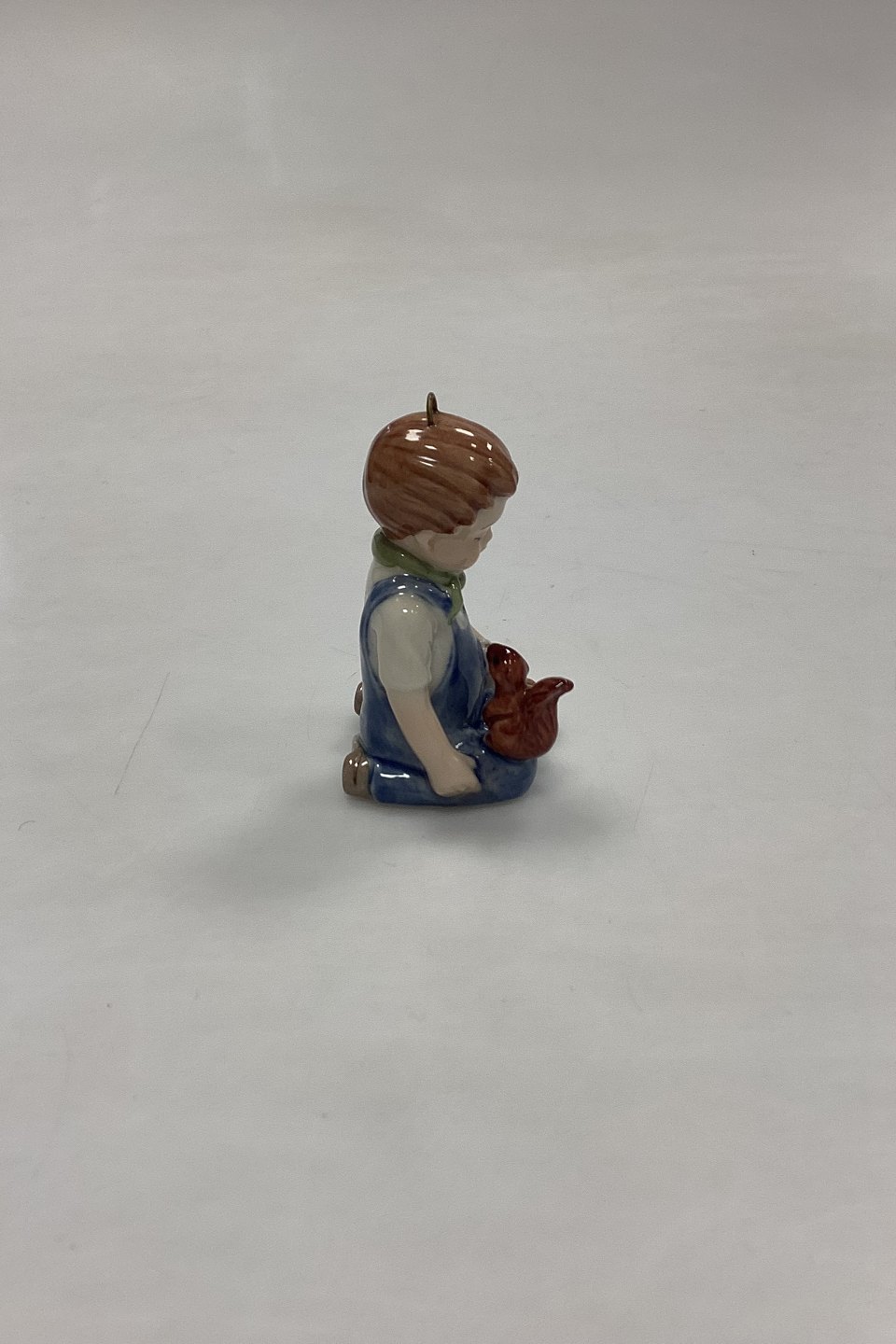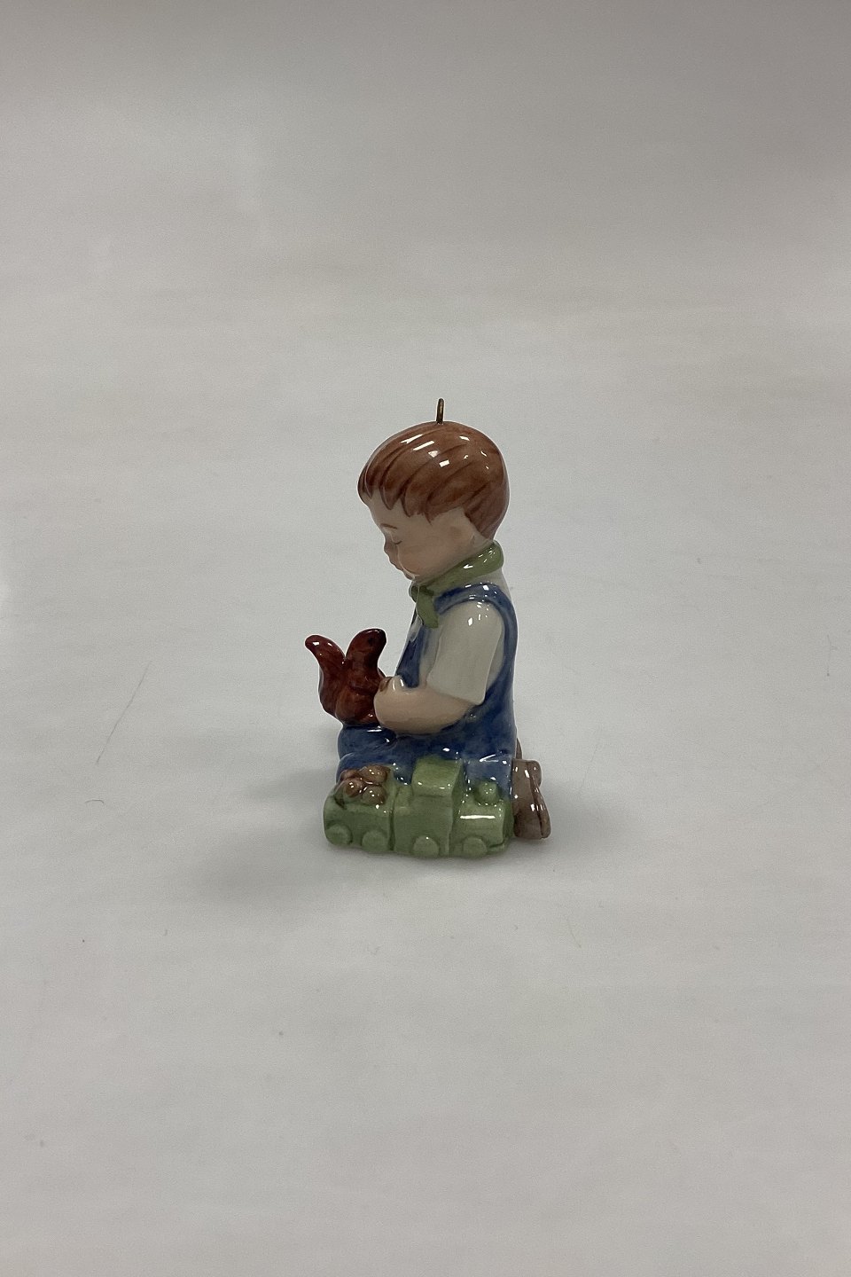 Bing og Grøndahl Collections 2001 Juleornament - Christian No. 743. Designet af Sven Vestergaard. Dreng med tog og egern. Figur til ophæng.