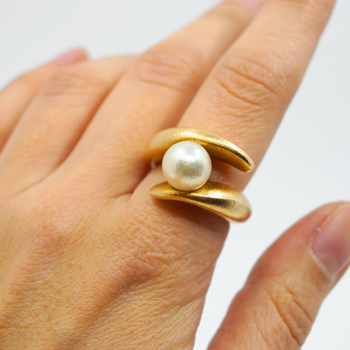 Ole Lynggaard ring af 14 kt. guld, prydet med perle.