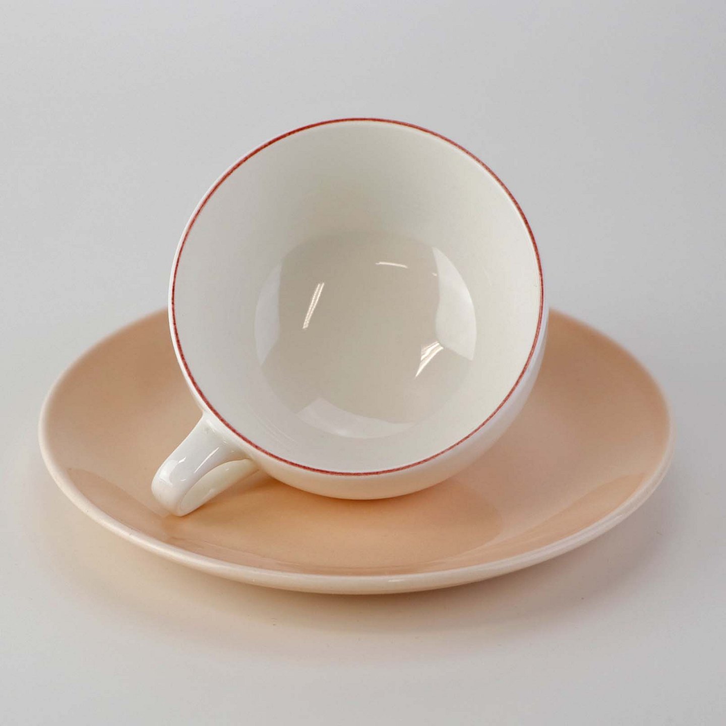 Lille morgenkop i fajance med rosa underkop fra stellet 4 All seasons nr. 069 og 073