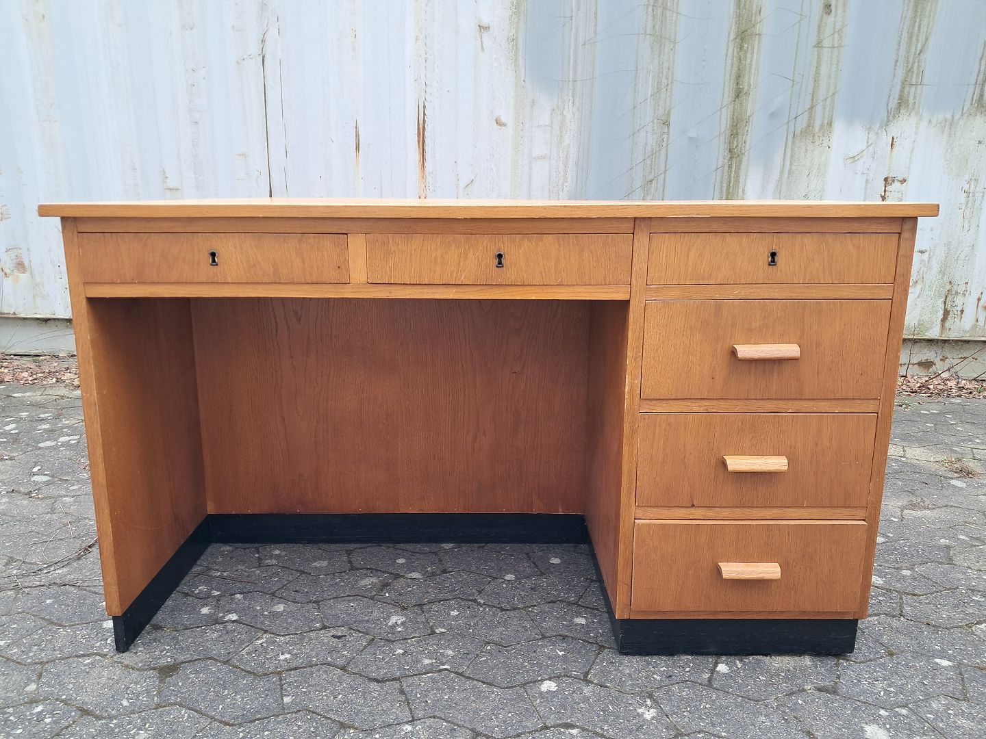 Skrivebord i fineret egetræ, fra 1950erne.