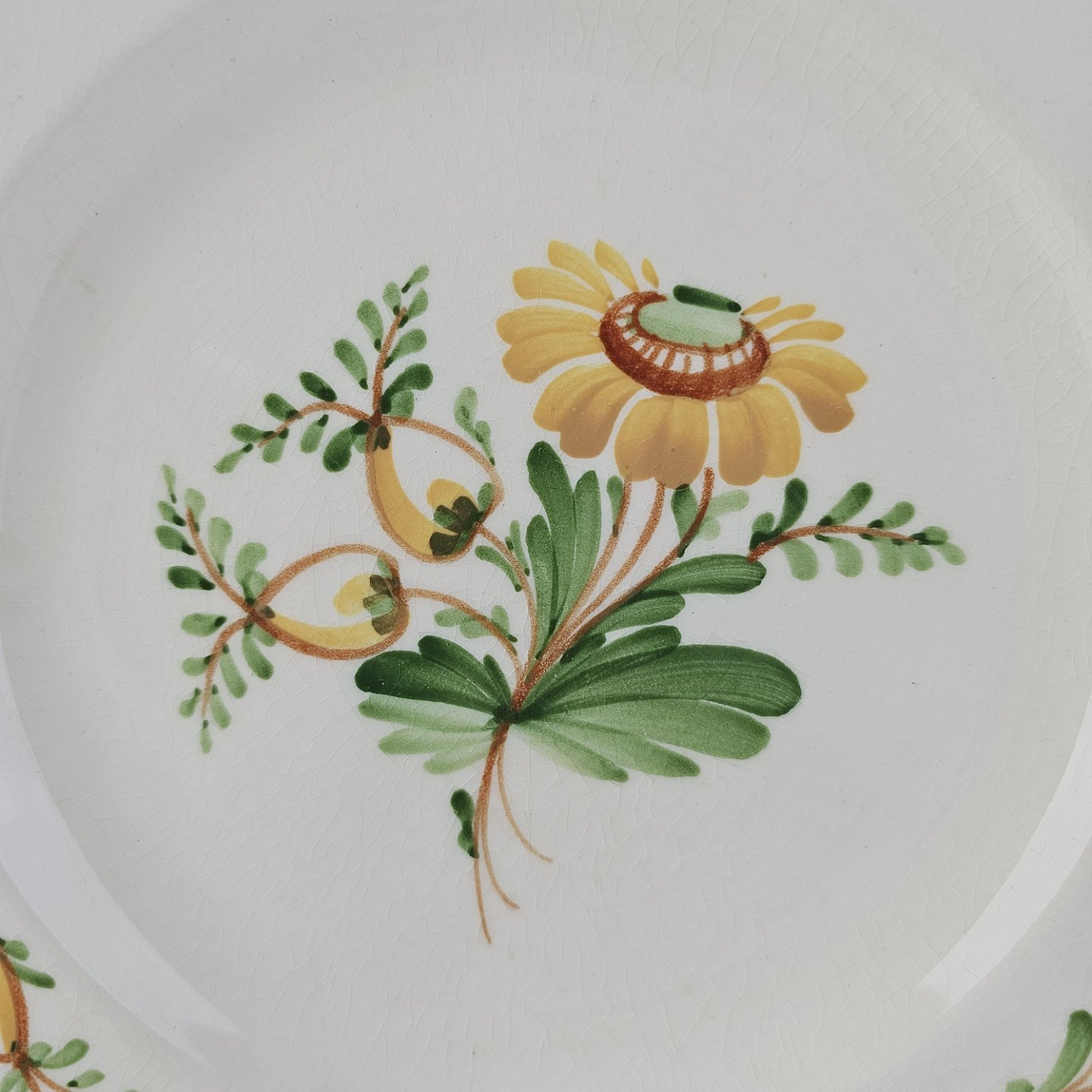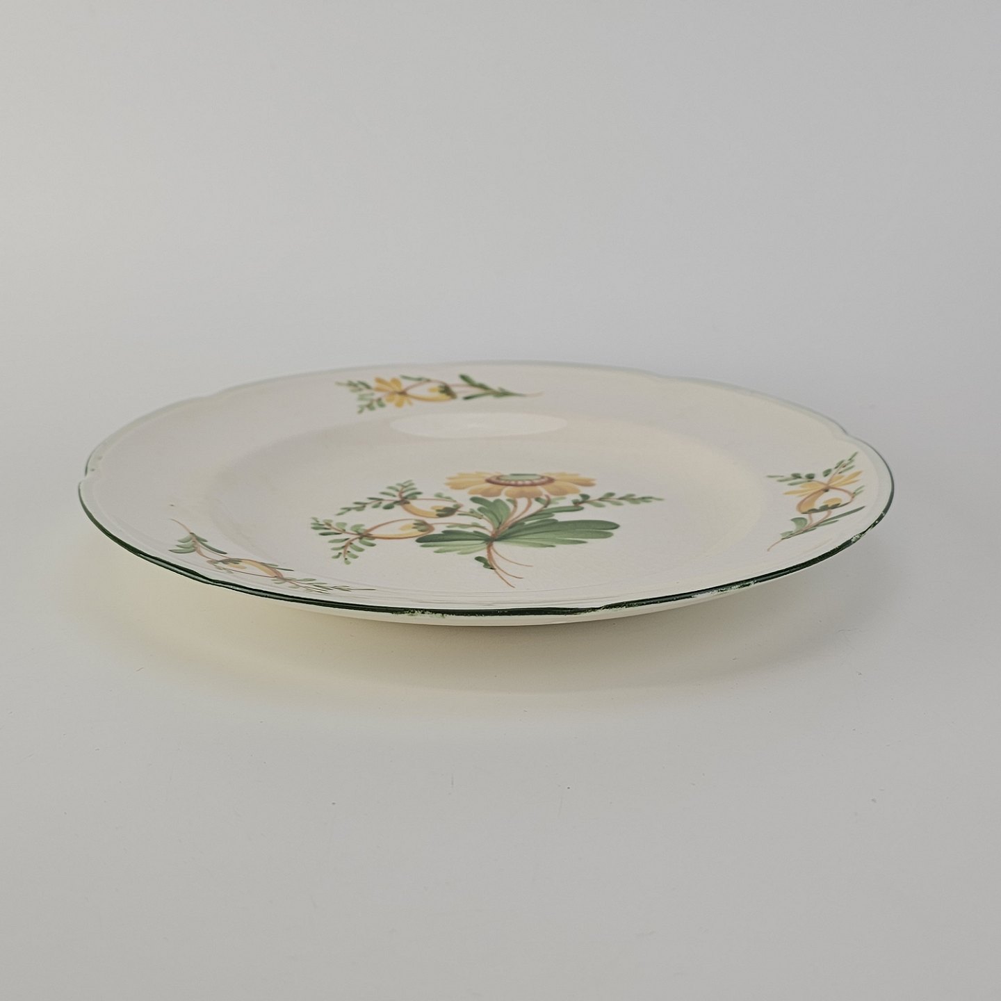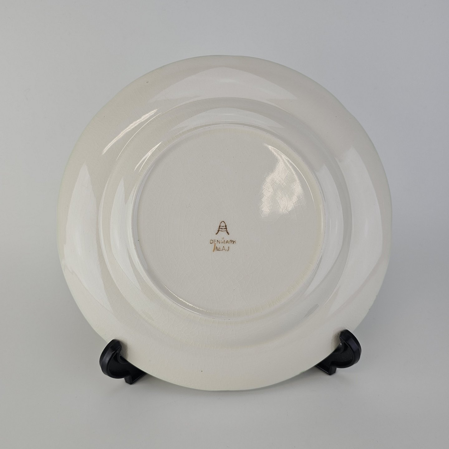 Flad tallerken i fajance fra stellet Maj fremstillet i perioden 1941-1966.