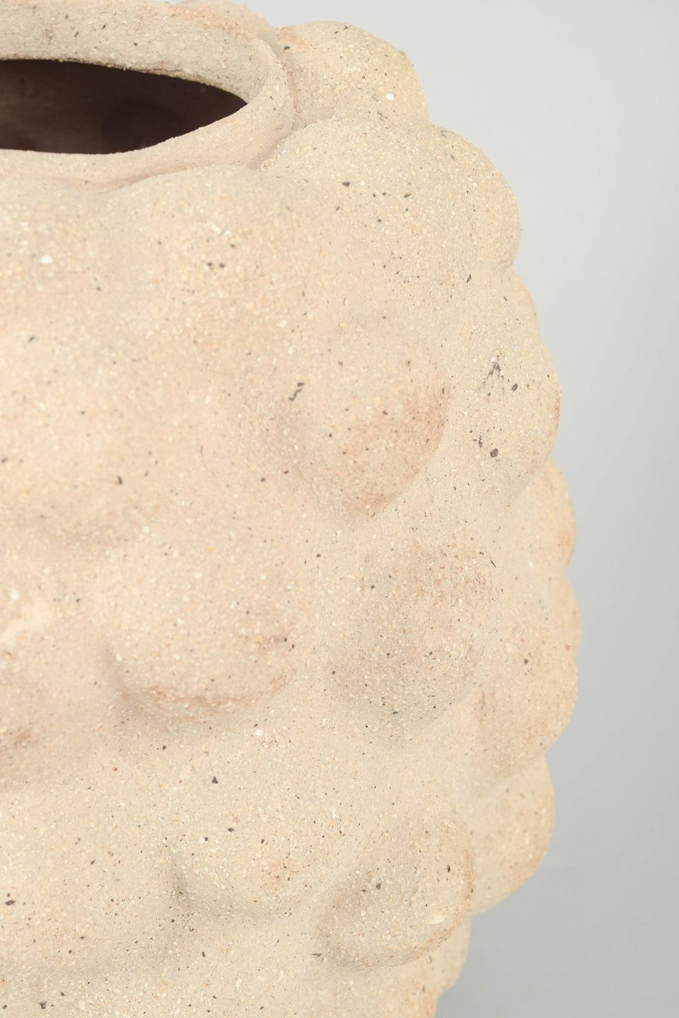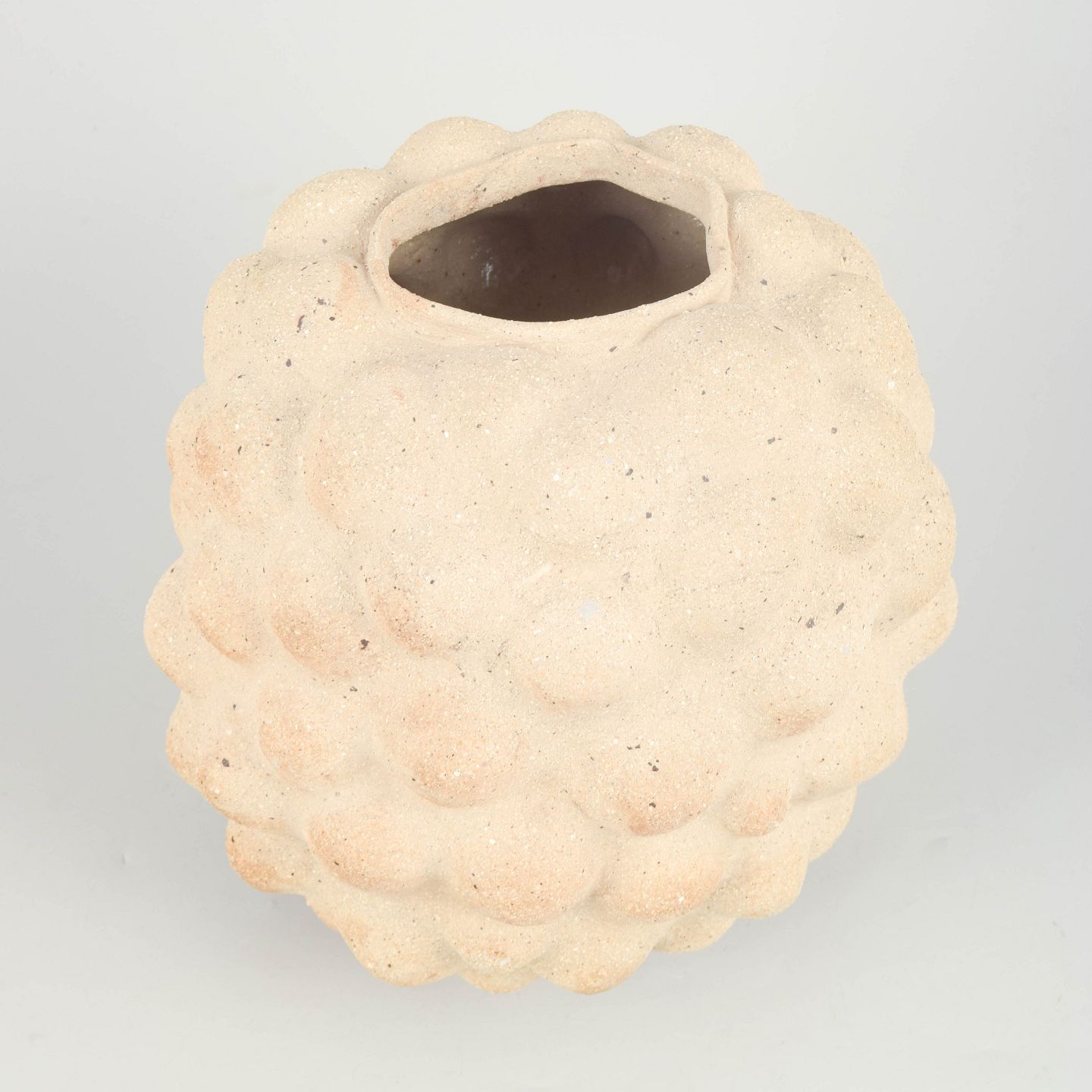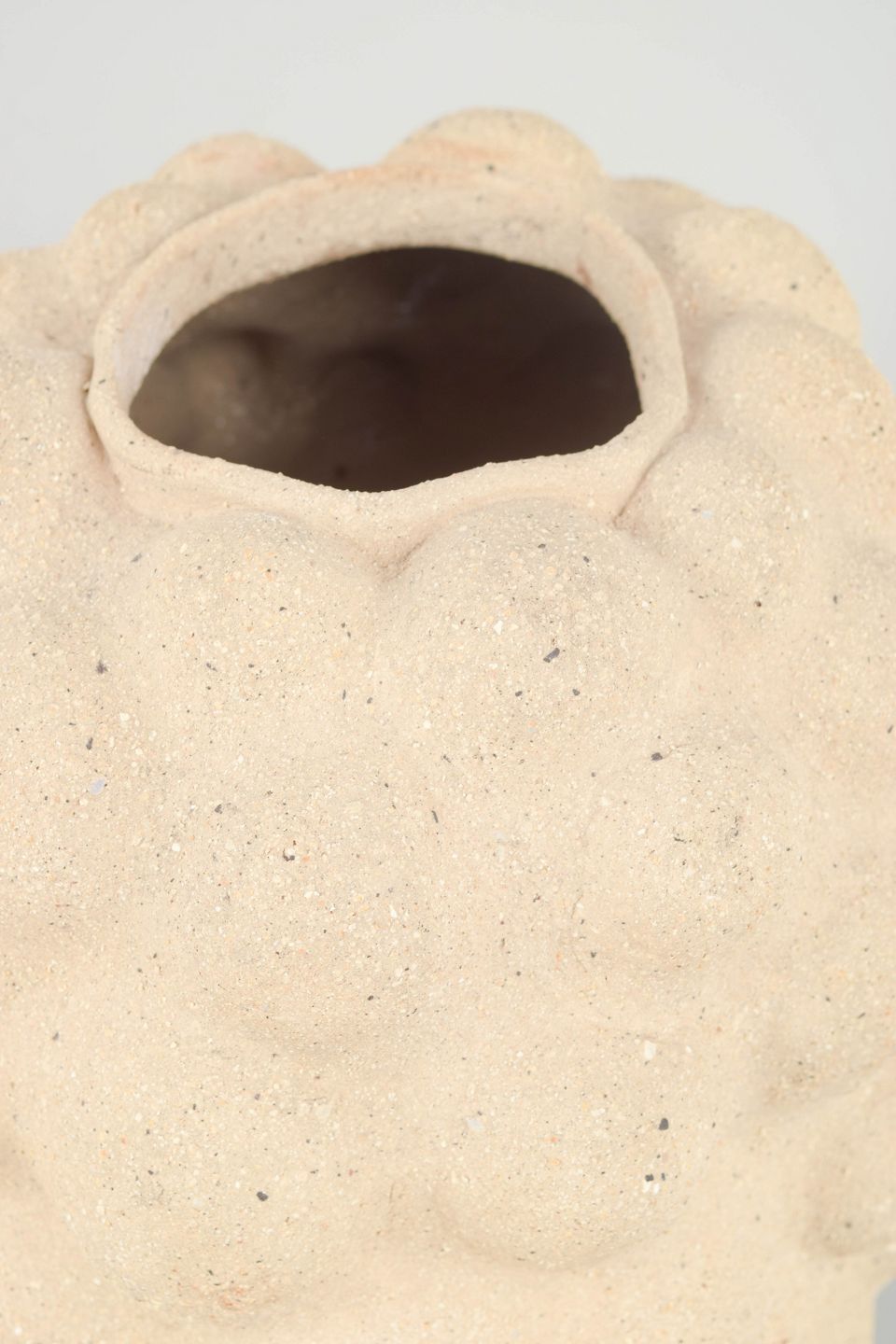 Unika stentøjsvase, organisk formet. Værket er uglaseret i kunstnerens signaturstil, hun har udarbejdet en teknik hvor leret vaskes ned så chamotten (små sorte og hvide emner i leret) fremstår meget synligt og får leret til at virke råt og smukt.