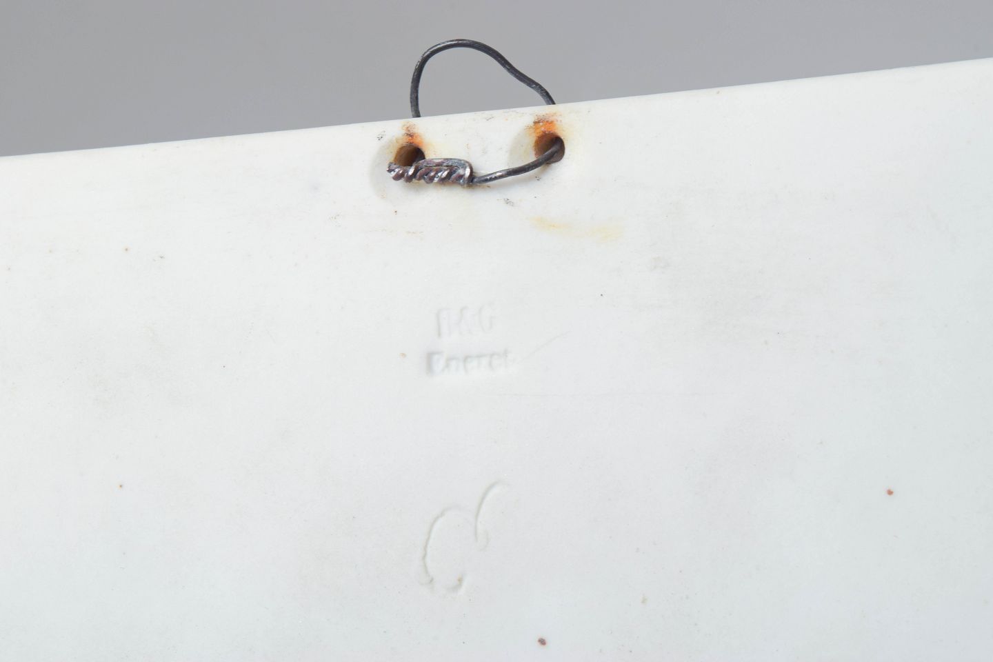 Rektangulært vægrelief i hvidt bisquitporcelæn med klassicistisk motiv af putti efter Bertel Thorvaldsen, udført med fine detaljer og blød modellering i nyklassicistisk stil.
