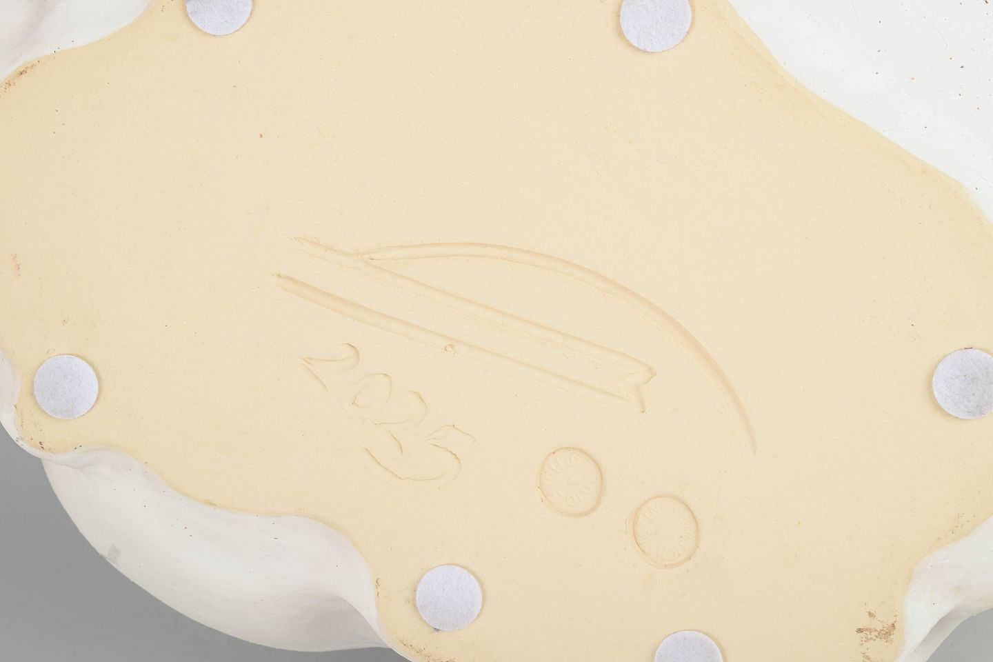 Unika stentøjsskulptur, organisk formet. Værket er dækket af et tyndt lag mat hvid porcelæn og pletvist penselglaseret med hvid, blank glasur, matte hvide glasurer og hvide glasurer med specielle effekter.
