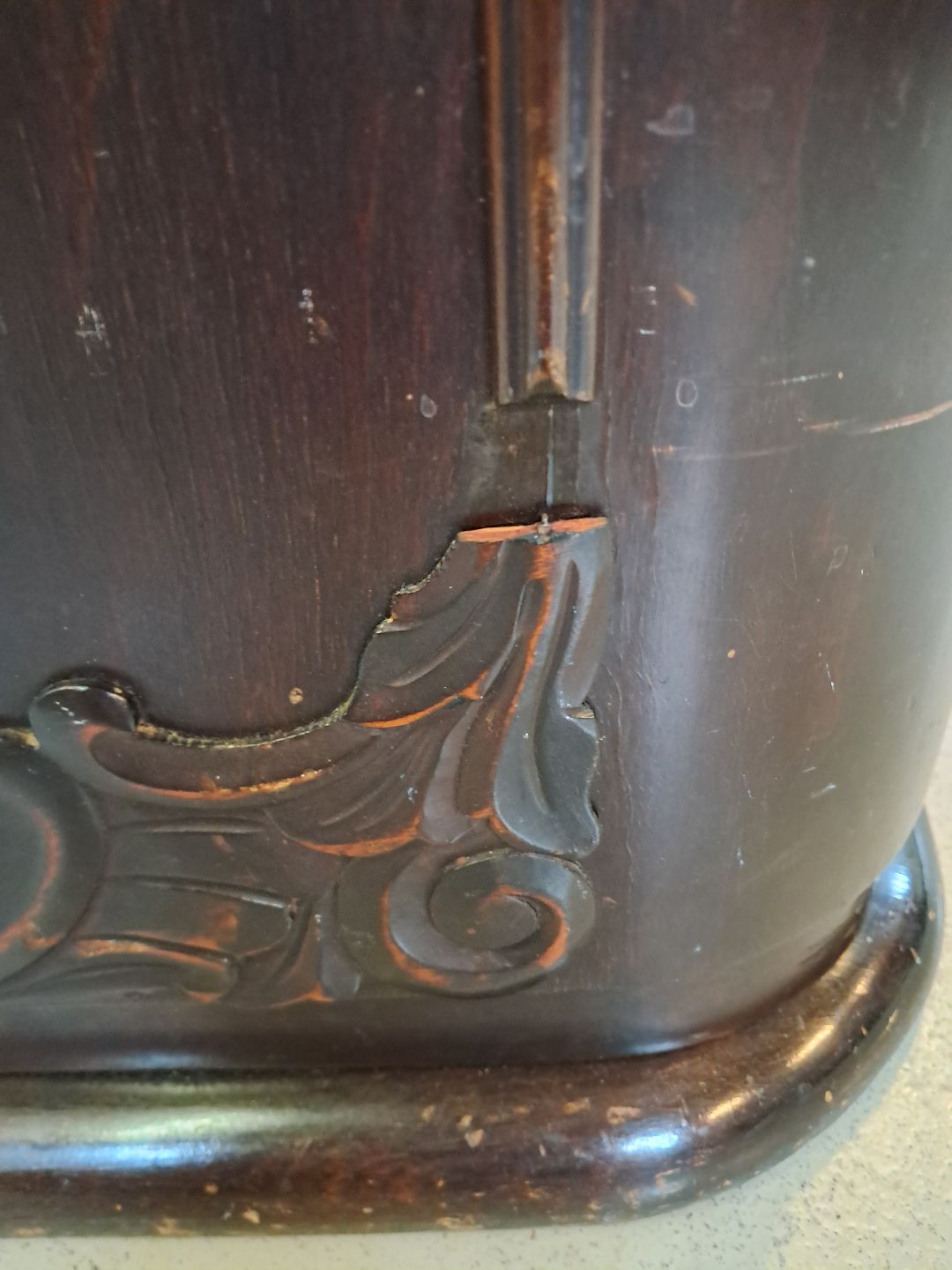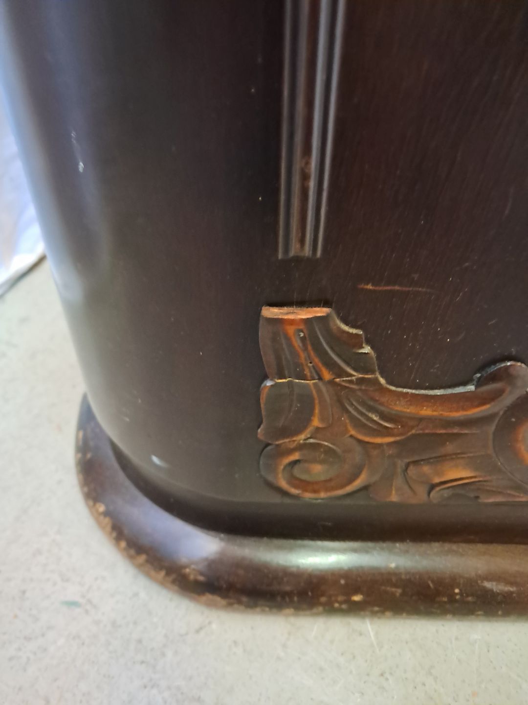 Den har en finer defekt og 2 defekter på prydlisterne. (se foto)