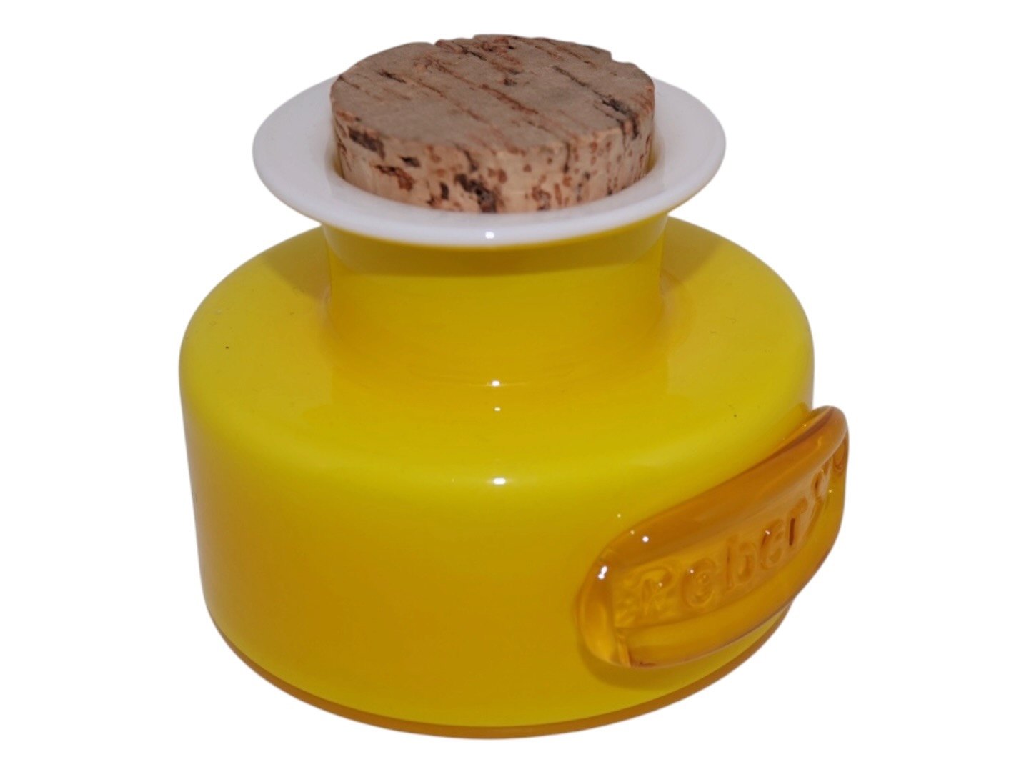 Holmegaard Palet gul krydderikrukke med teksten "Peber".