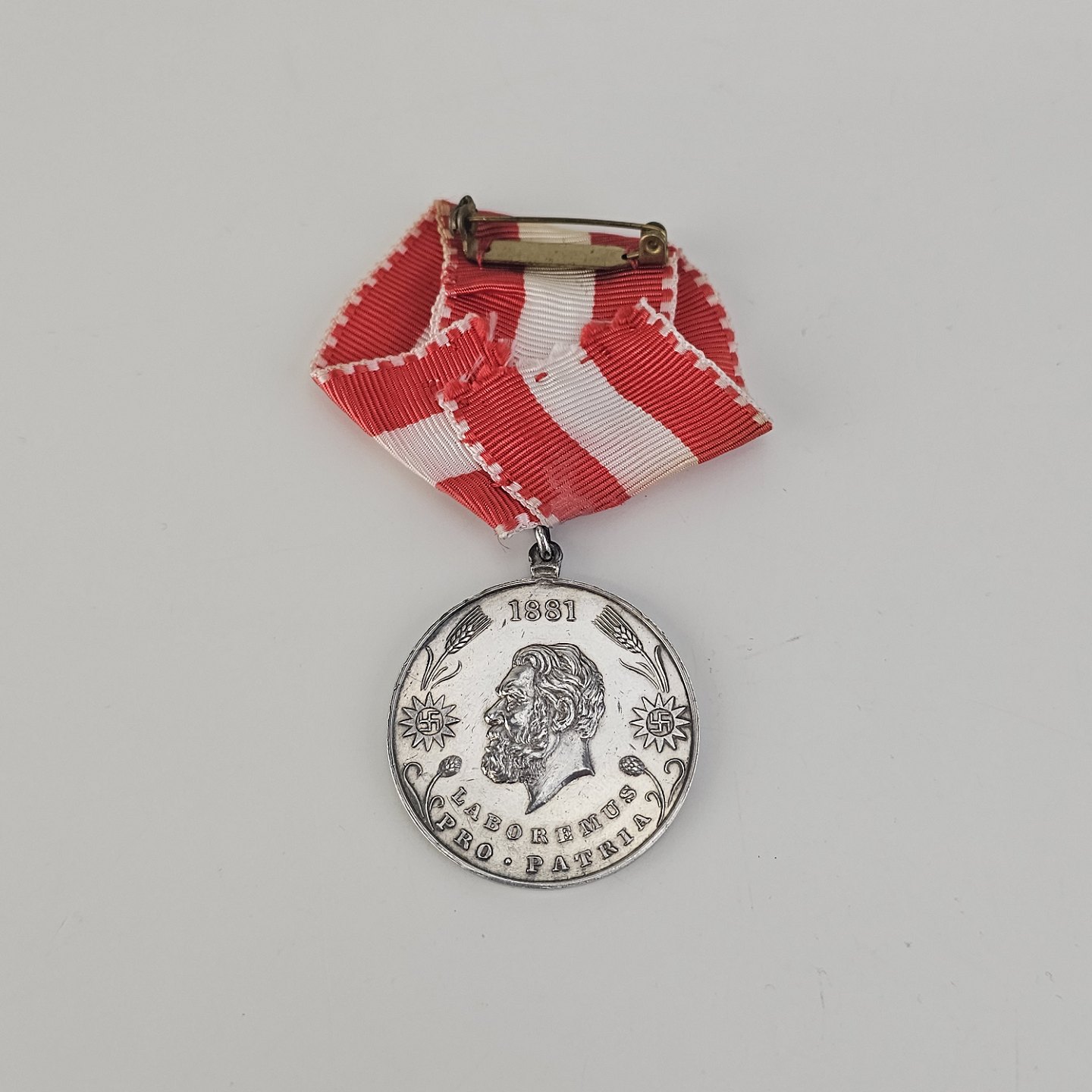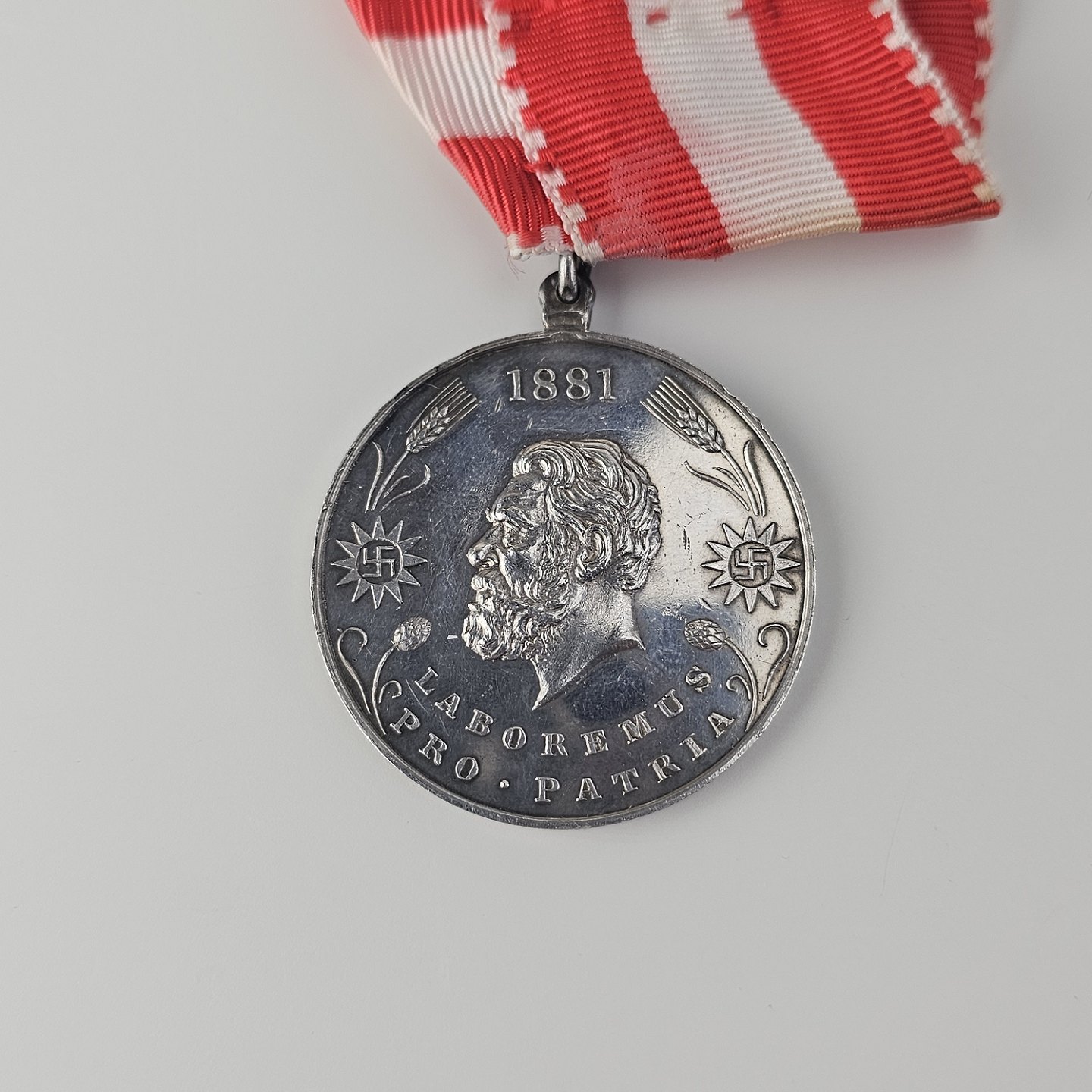 Carlsberg jubilæumsmedalje i sølv med Carlsberg 1847 graveret på den ene side og "Laboremus pro patina" 1881 på den anden