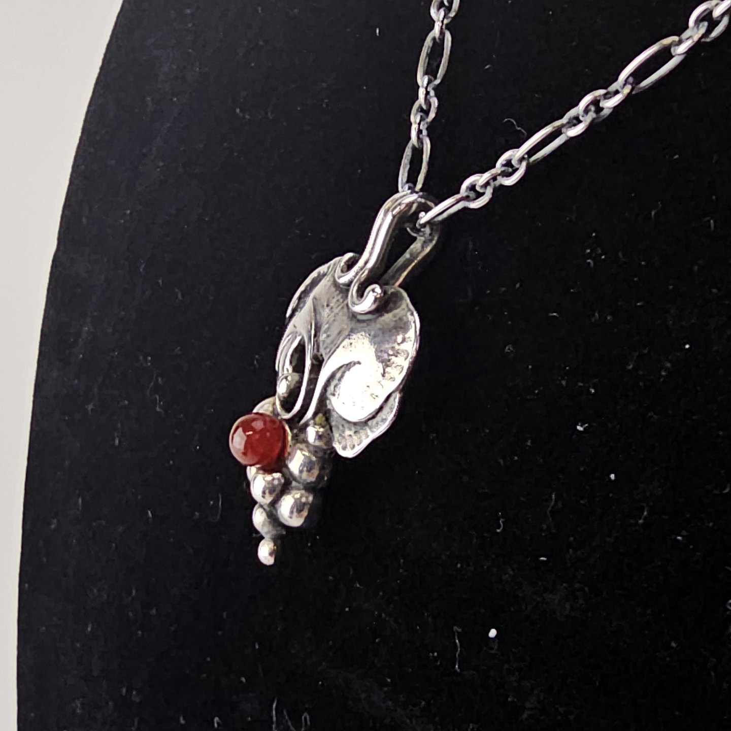 Vedhæng i sterling sølv med motiv af en klase druer, og karneol perle.
