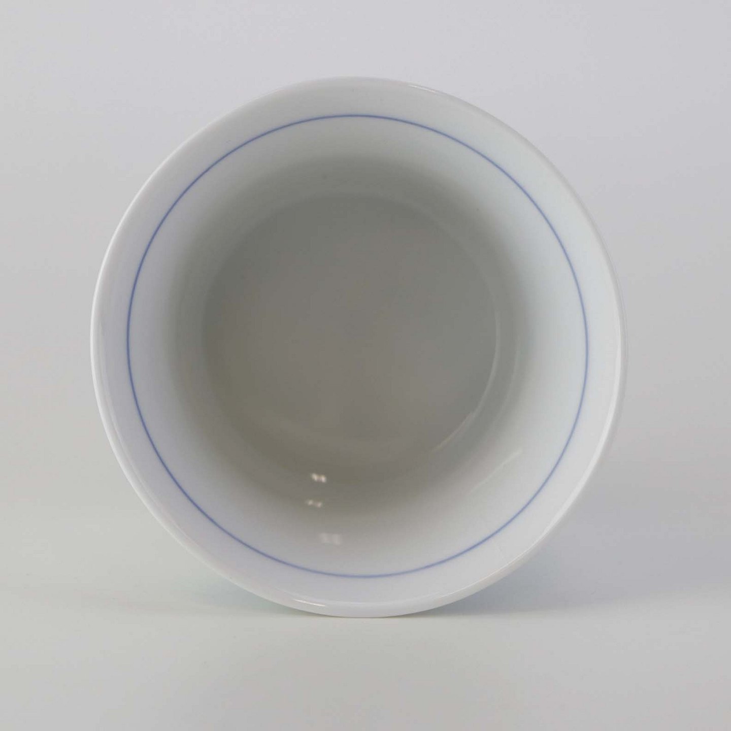 Service i hvid porcelæn med skelform og dekoration af blå blomsterranker.