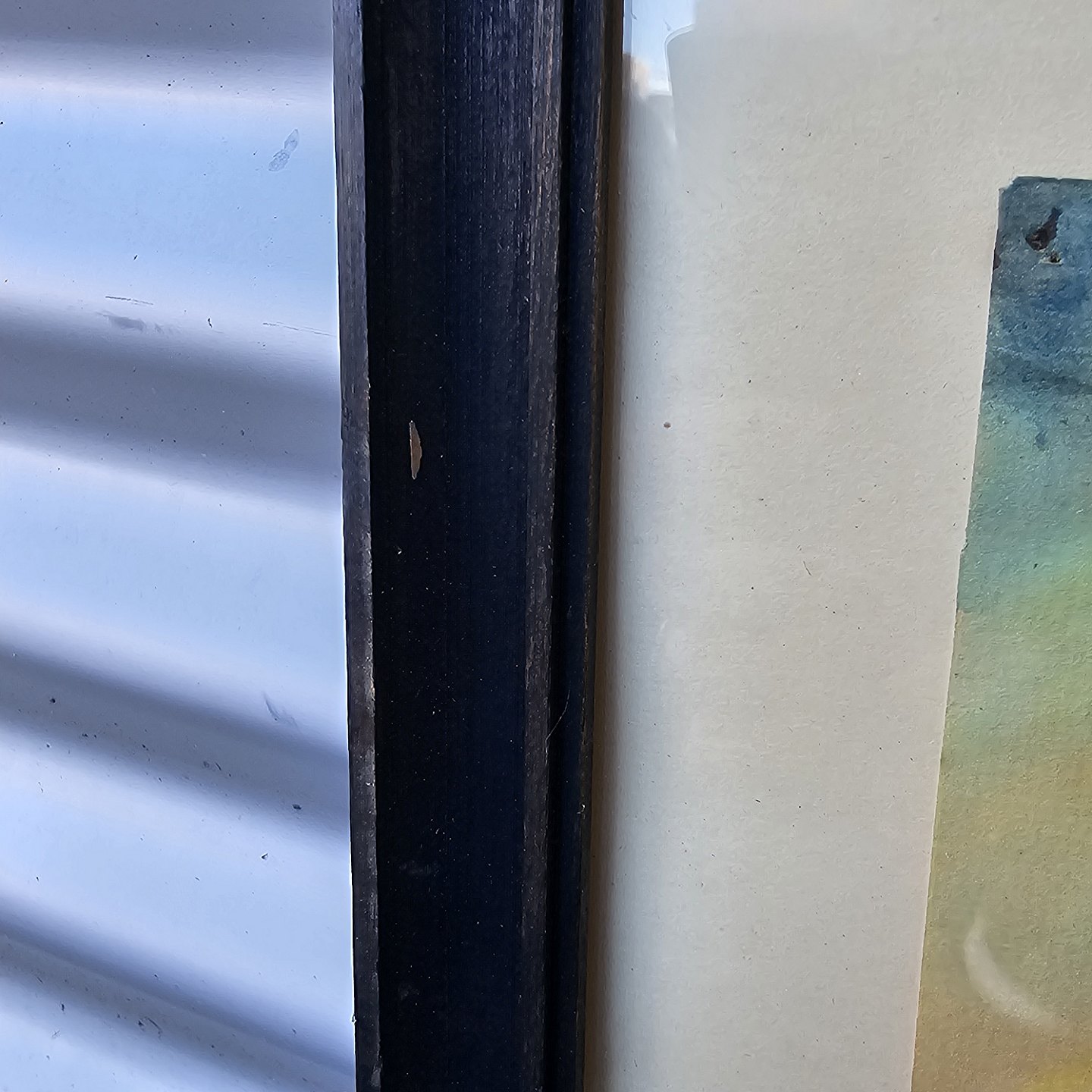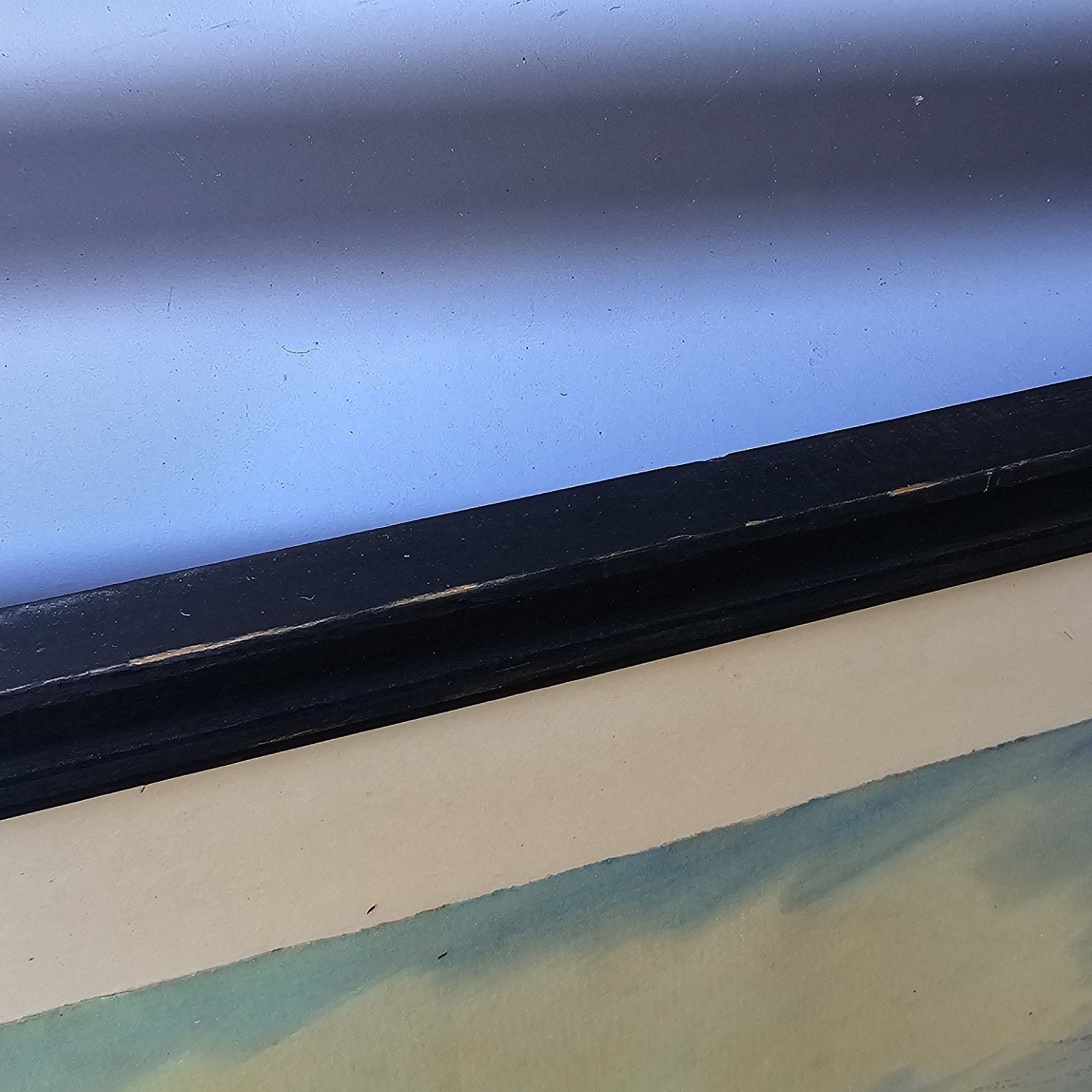 Fremstår med brugsspor på rammen og nålemærker i papiret