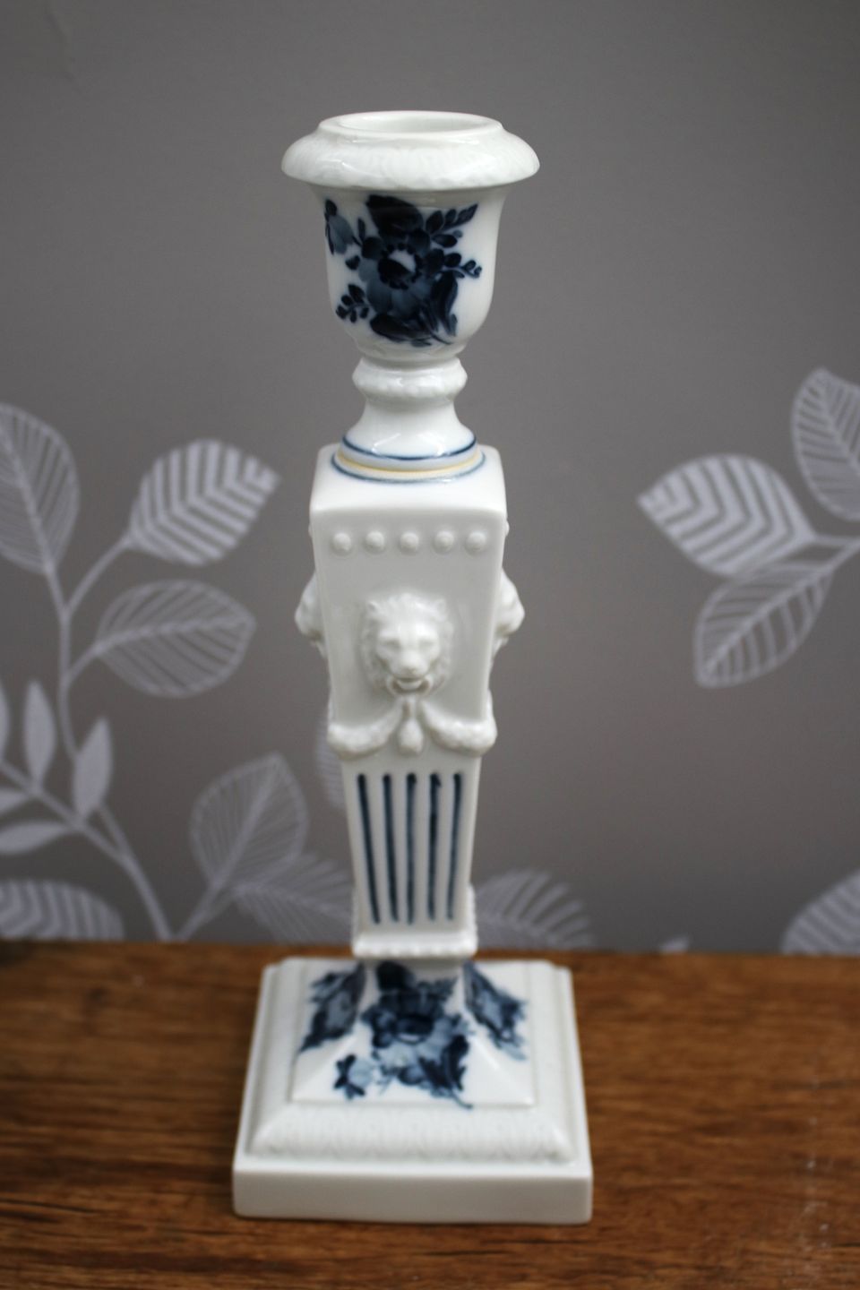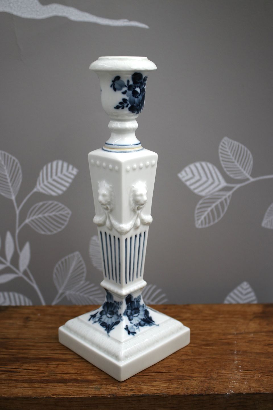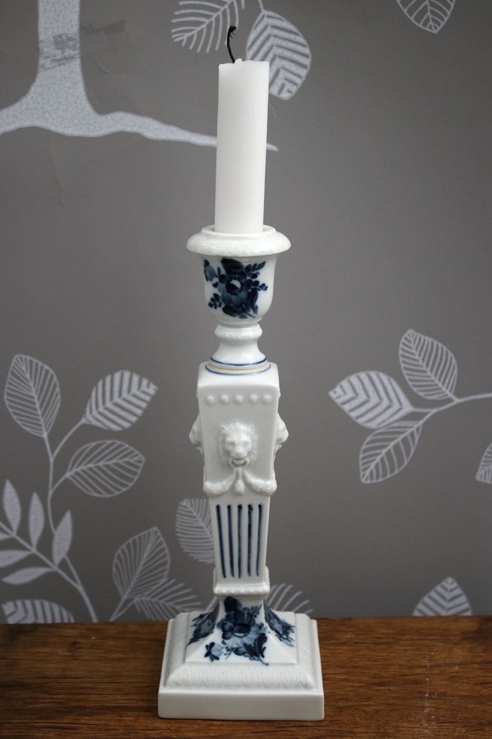 Løve lysestage i Blå Blomst fra Royal Copenhagen , med løvehoveder