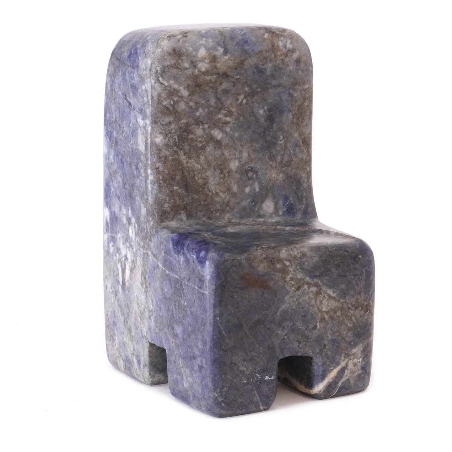 Poul Isbak, f. 1943, skulptur i form af stol udført i afrikansk blå granit. Signeret og dateret 1998. H: 23cm. B: 12,5cm. D: 14,5cm