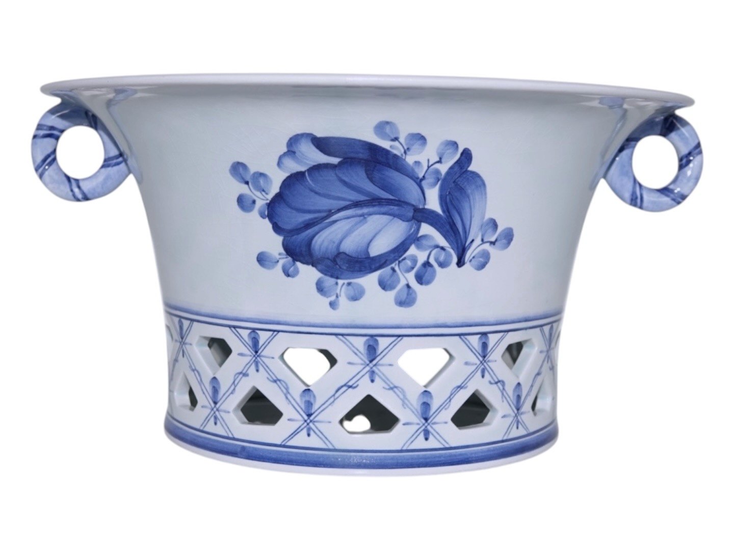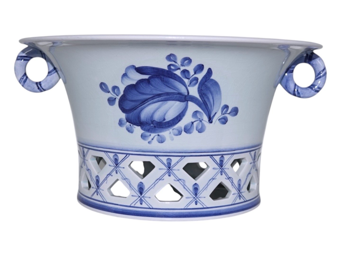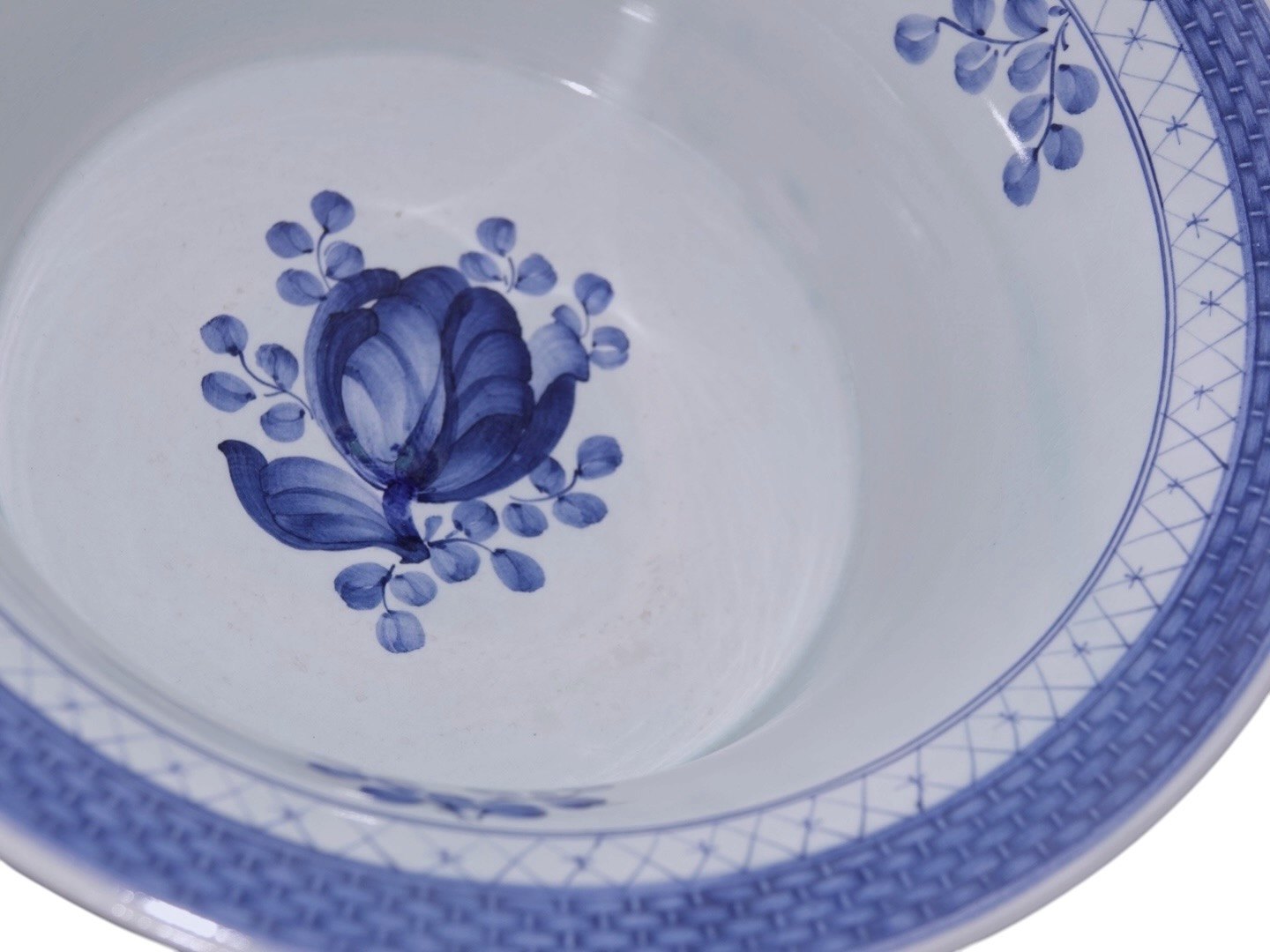 Aluminia Tranquebar, stor og sjælden skål med gennembrudt kant.