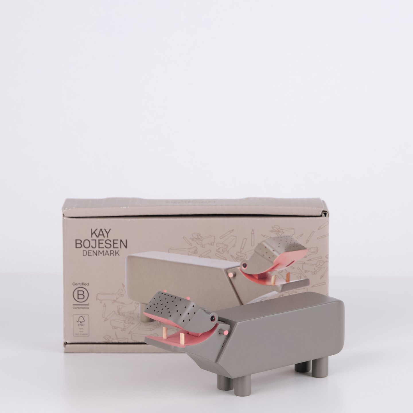 Lilliput Flodhest designet af Kay Bojesen udført i grå bemaling. Jubilæumsudgave lanceret i forbindelse med 70 års markering af den originale flodhest fra 1955. Modellen er produceret i FSC-certificeret bøgetræ og fremstilles i mindre format end den klassiske version. Kay Bojesens trædyr er blandt de mest kendte designobjekter inden for dansk design og samlerobjekter.