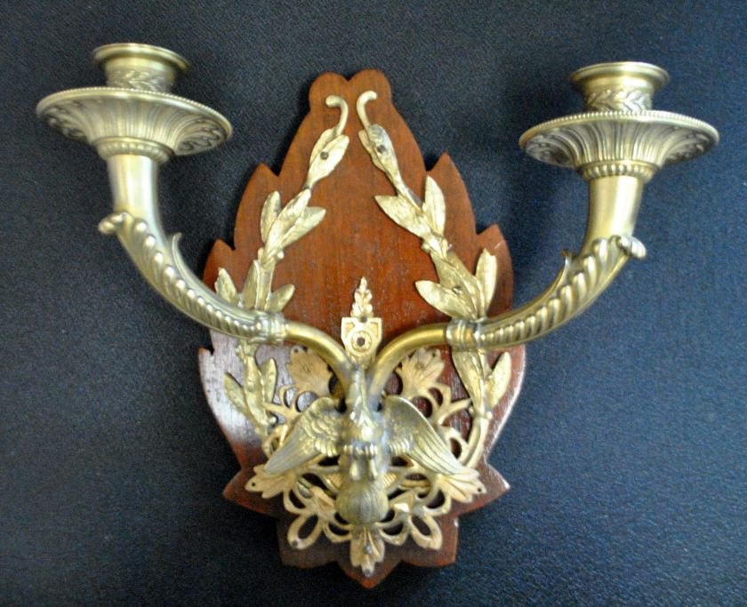 Par franske bronze dobbelte vægstager, monteret på træ, 19. årh.