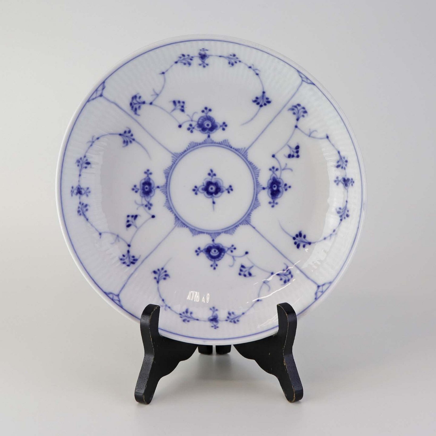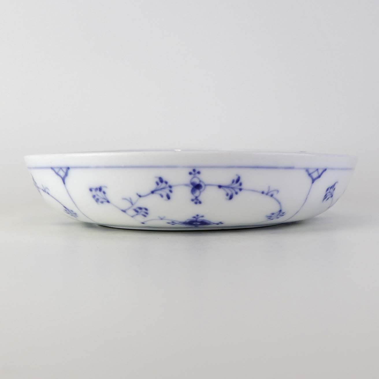 Rund skål til opsats i kongeligt porcelæn fra stellet Musselmalet riflet.