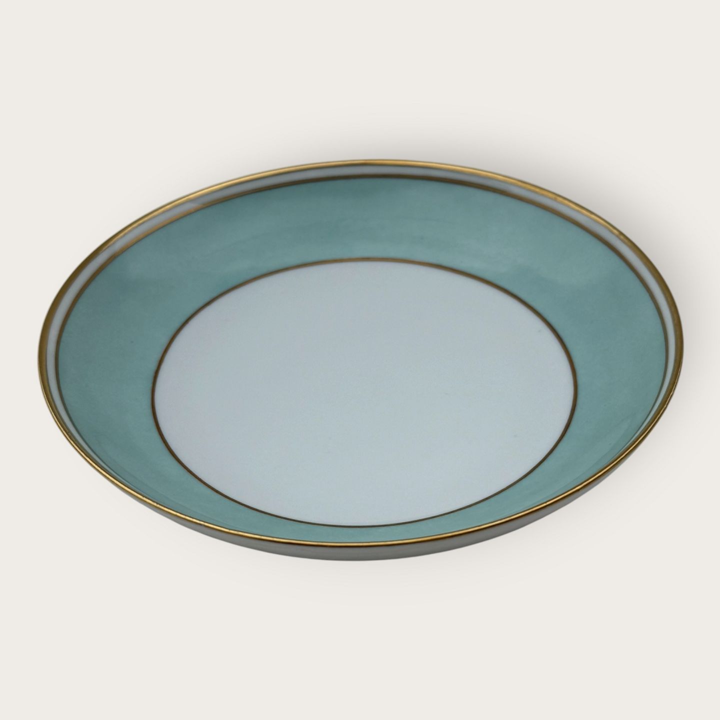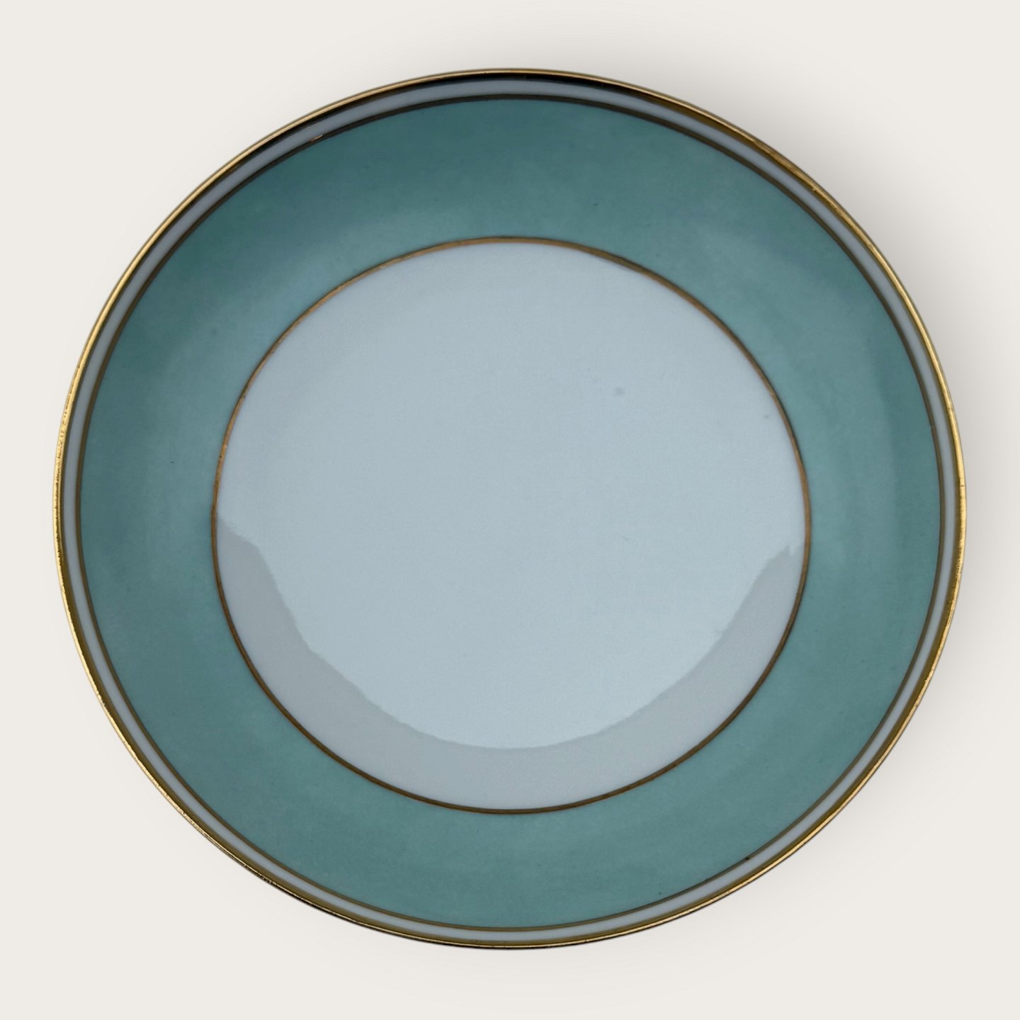 Bing & Grøndahl, Form 643 med bred turkis dekoration og guldkant, Lille dyb tallerken / skål, diameter 17,5cm, højde 3,5cm, 1. sortering, *pæn stand*